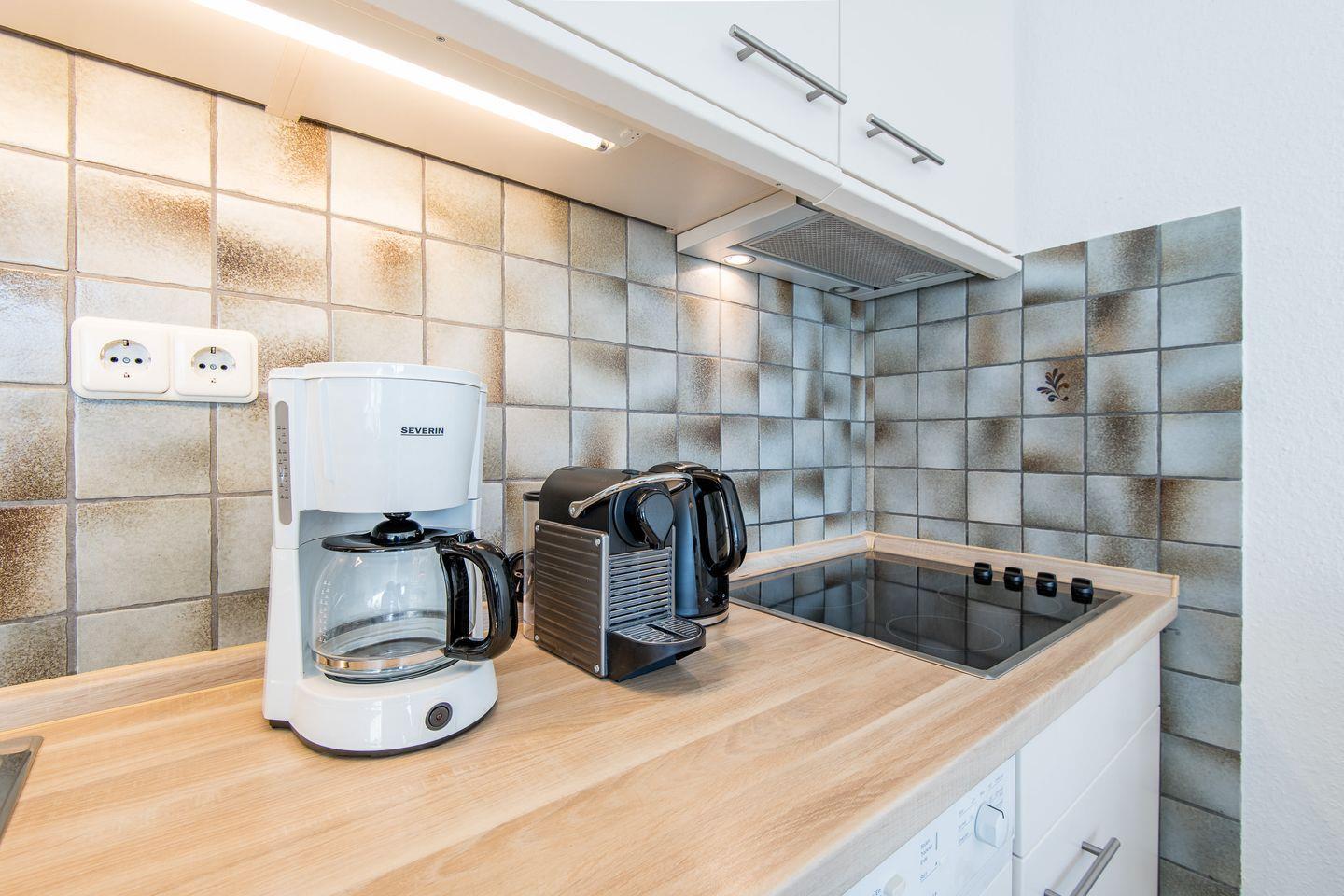 Die offene Küche ist mit einem 4-flammigen Herd, Geschirrspüler und allem notwendigen Komfort ausgestattet und bietet die perfekte Möglichkeit, Ihre Lieblingsgerichte zuzubereiten.