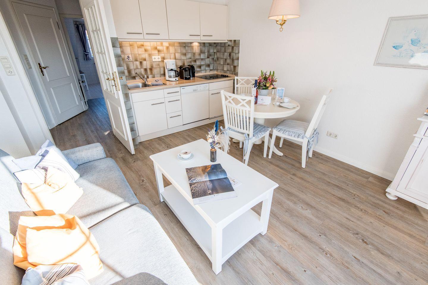 Diese charmante 2-Zimmer-Ferienwohnung erstreckt sich über ca. 50 qm auf zwei Ebenen und ist ideal für bis zu 4 Personen. Die strandnahe Lage in Westerland macht sie zur perfekten Wahl für entspannte Tage auf Sylt. Hunde sind willkommen.