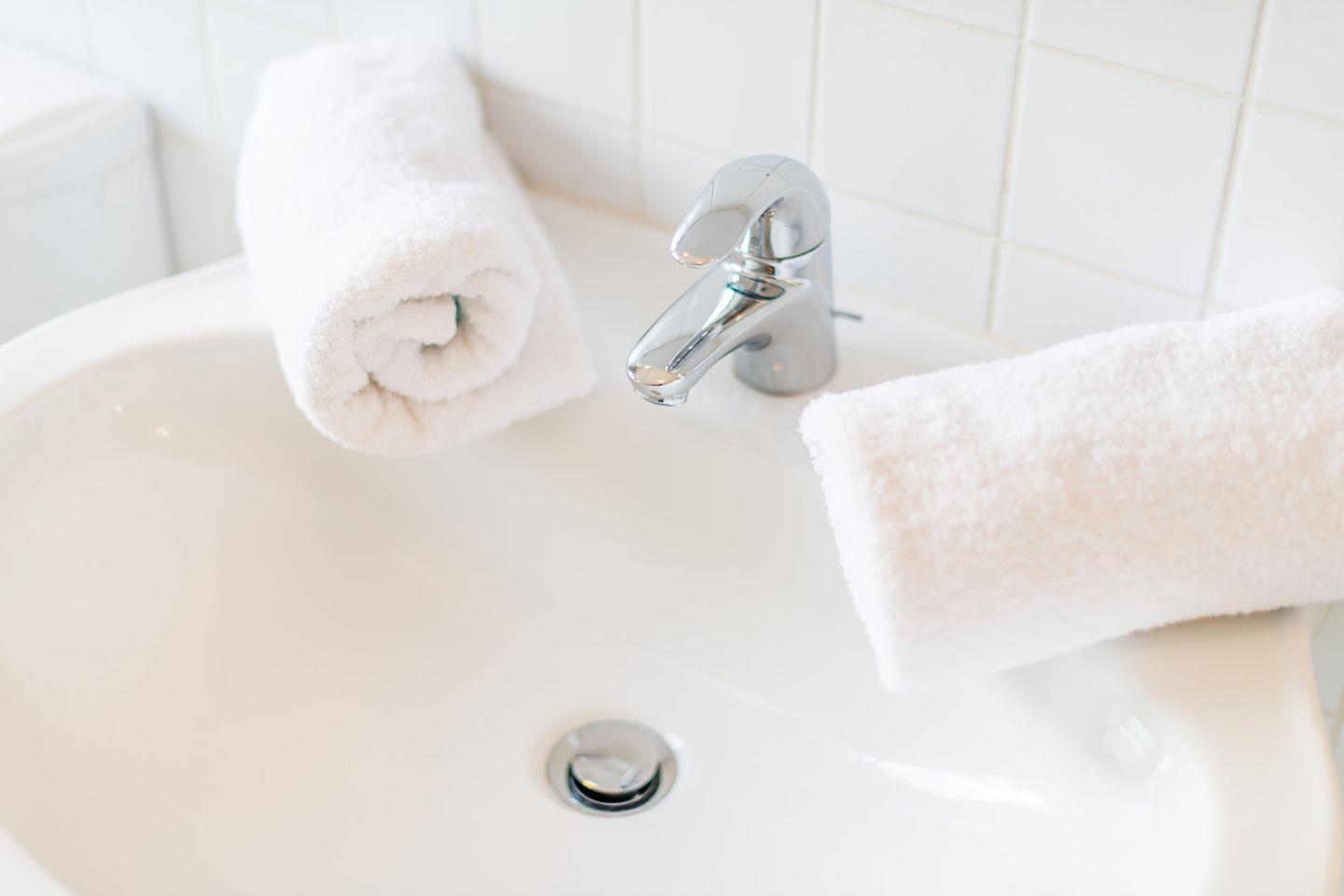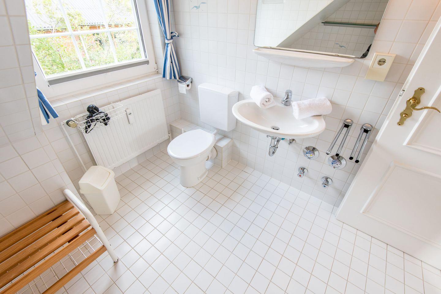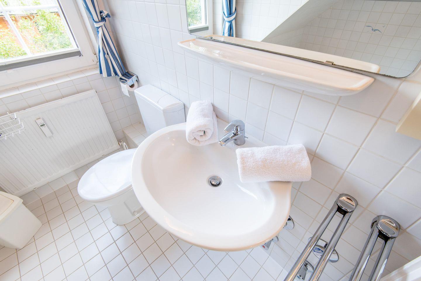 Das Badezimmer verfügt über eine Dusche, WC, Föhn und Tageslicht und bietet einen modernen, hellen Rückzugsort.