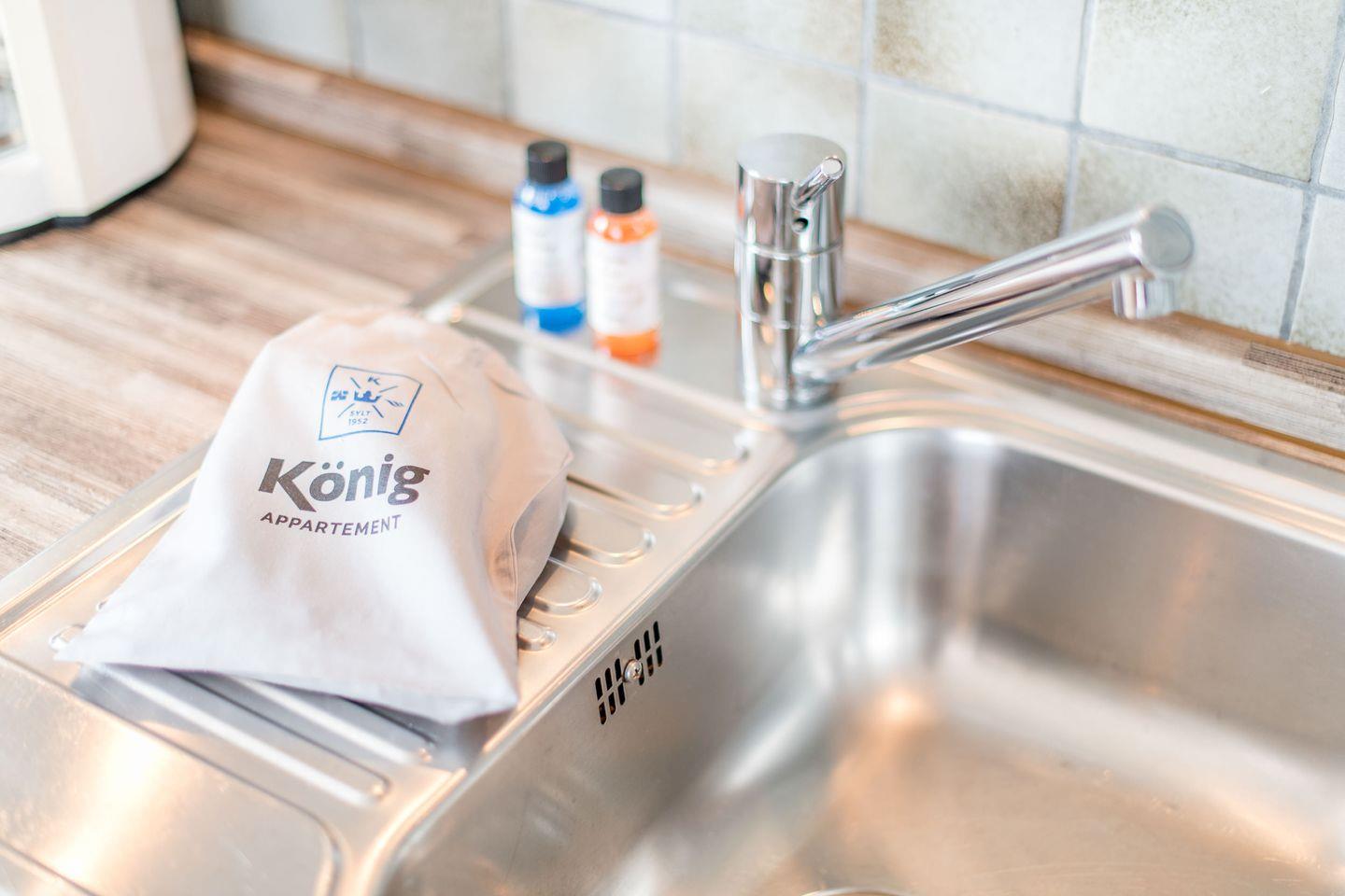 Im Eingangsbereich befindet sich ein Flur mit Garderobe und Einbauschrank. Waschmaschine und Trockner stehen gegen Gebühr im Haus zur Verfügung, und WLAN wird ohne Gewähr angeboten.