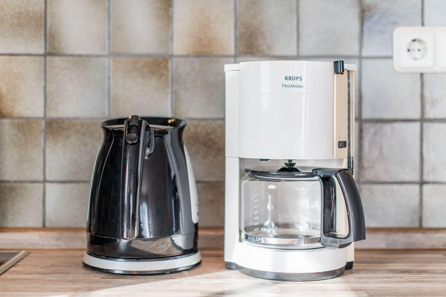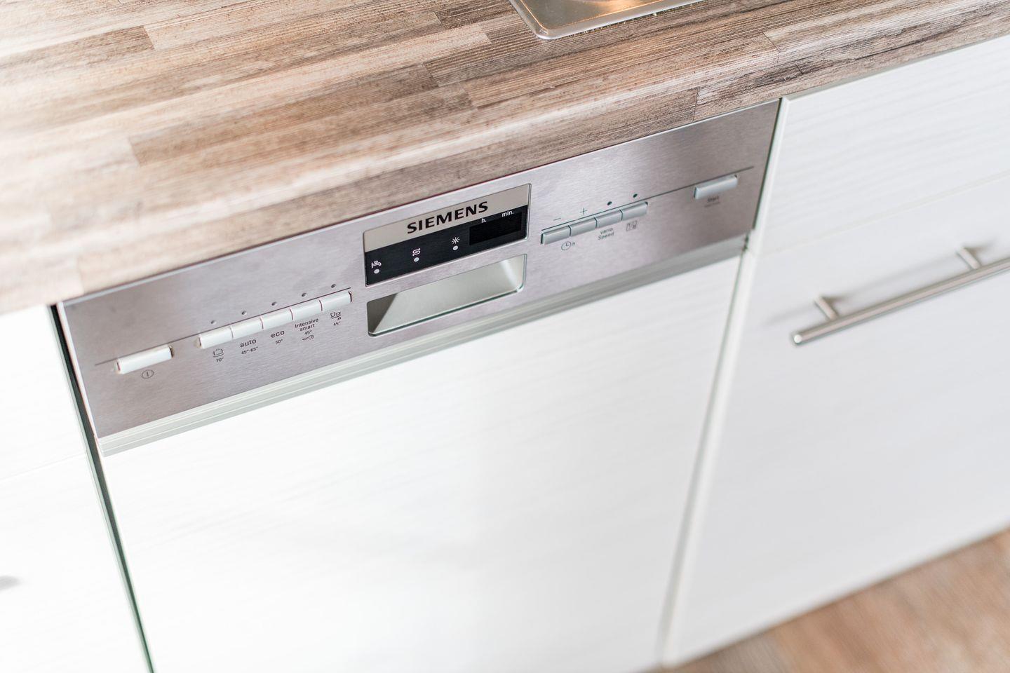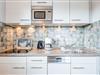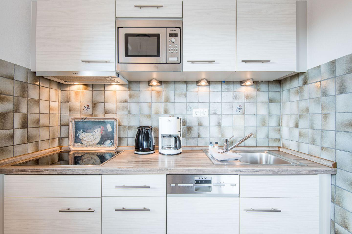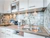 Die offene Küche ist vollständig ausgestattet und bietet einen 4-flammigen Herd, Geschirrspüler und alle nötigen Küchenutensilien für eine entspannte Selbstversorgung.
