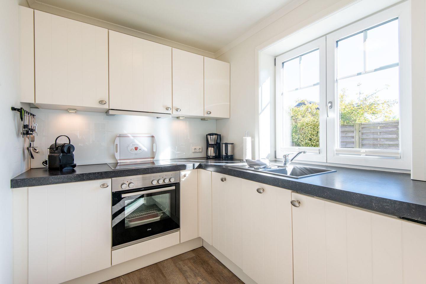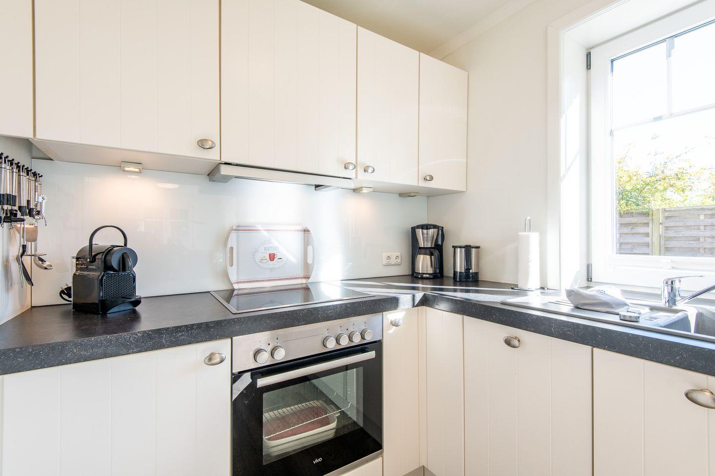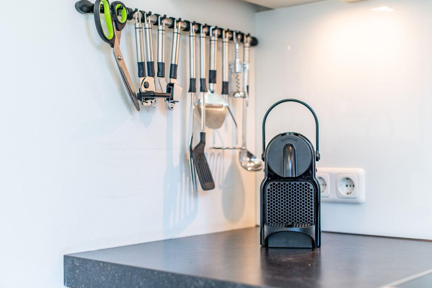 Die offene Küche bietet modernen Komfort mit einer vollständigen Ausstattung, darunter ein Geschirrspüler und eine DeLonghi Nescafe DolceGusto-Maschine. Hier finden Sie alles, was Sie für die Zubereitung köstlicher Mahlzeiten benötigen.
