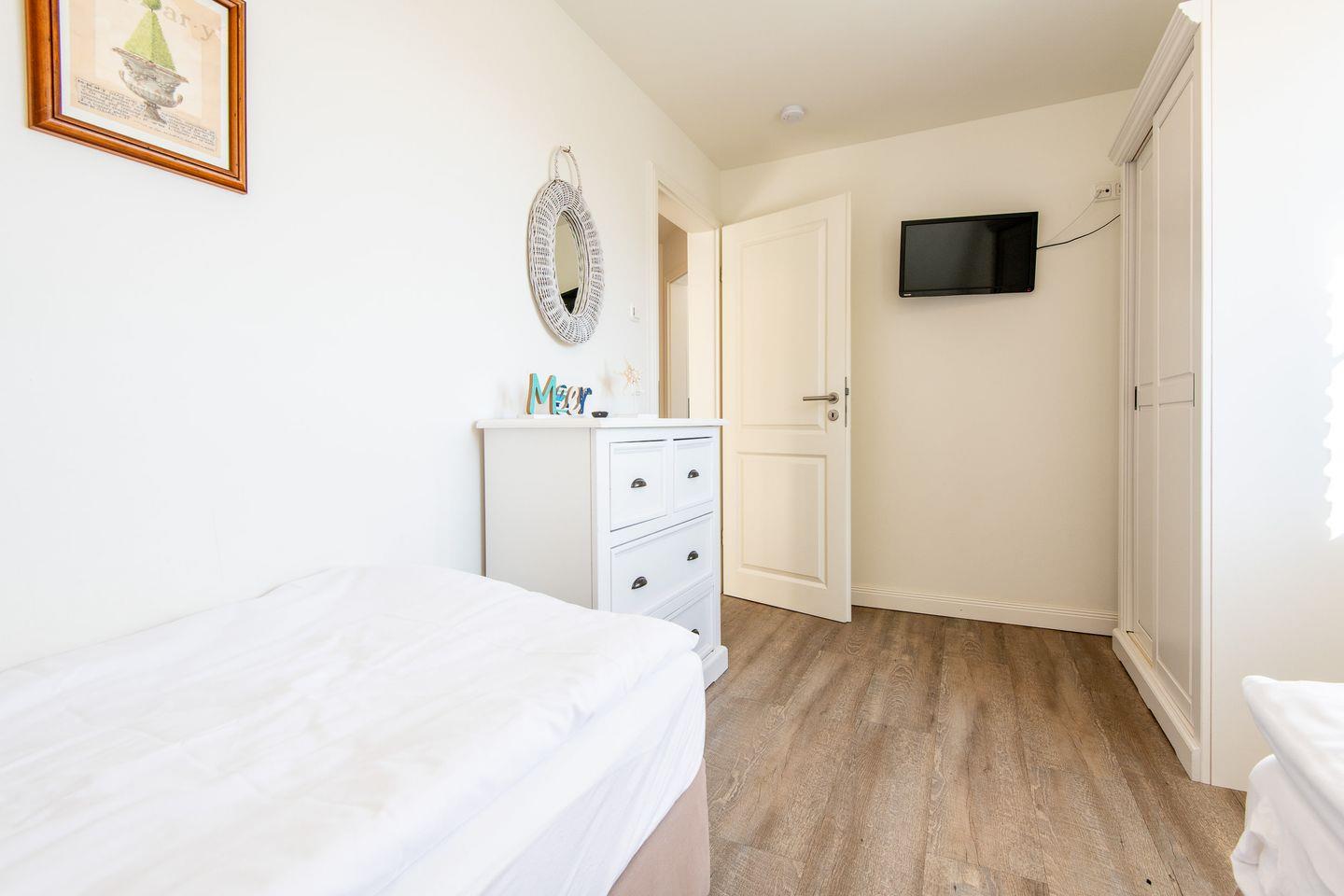 Das Haus verfügt über drei komfortable Schlafzimmer, die jeweils mit Doppel- oder Einzelbetten, Einbauschränken oder Kommoden und Fernsehern ausgestattet sind – ideal für erholsame Nächte.