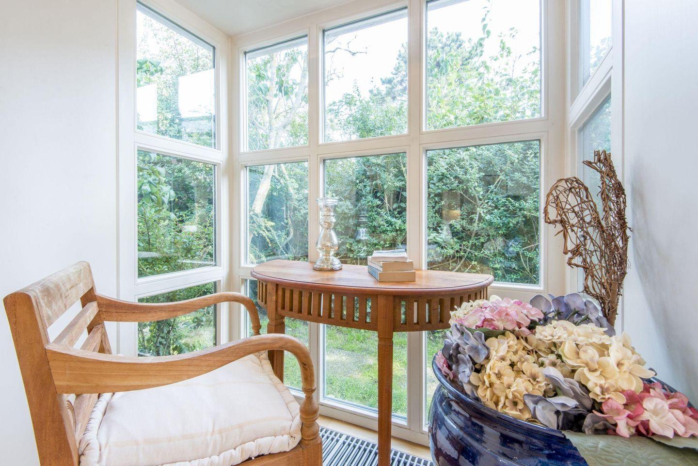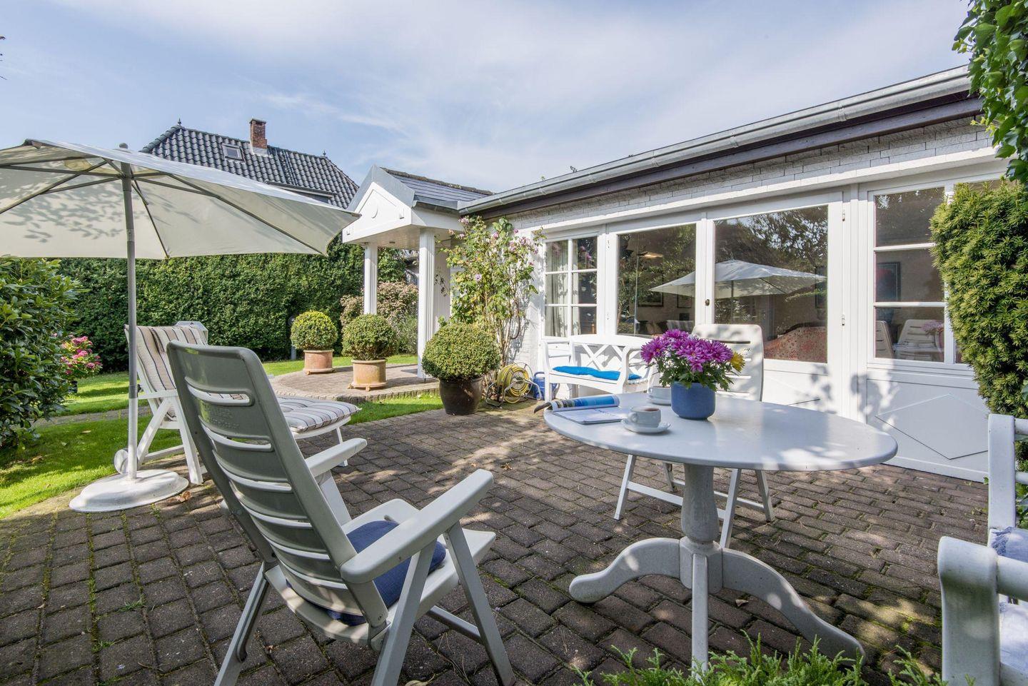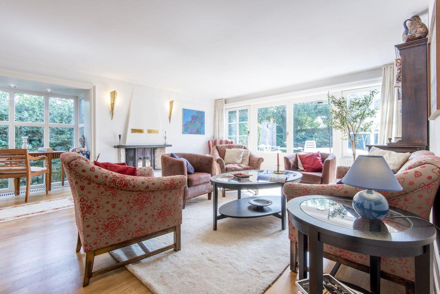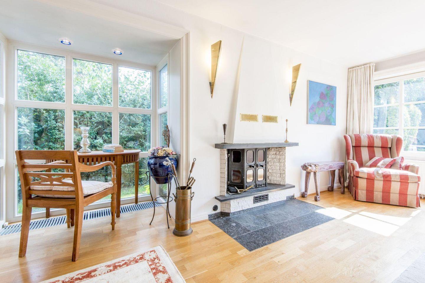 Das große, helle Wohnzimmer ist mit einem bequemen Sofa, Sesseln, einem Schreibtisch und einem TV ausgestattet. Von hier aus haben Sie direkten Zugang zur möblierten Südterrasse und dem eingezäunten Garten mit einem charmanten reetgedeckten Pavillon – perfekt, um die Ruhe und das Ambiente in vollen Zügen zu genießen.
