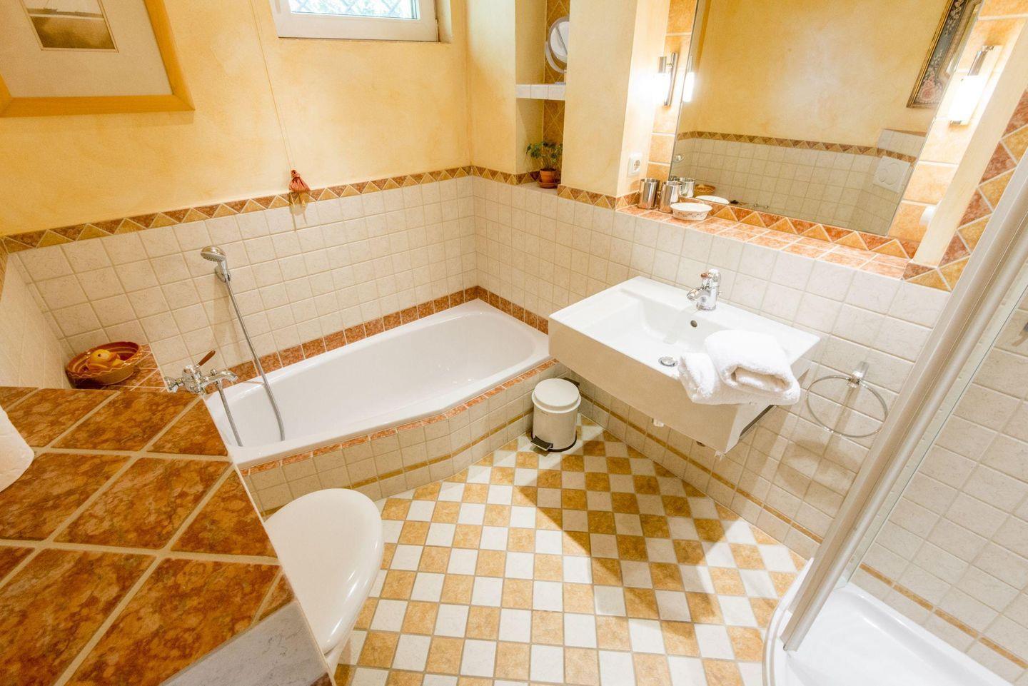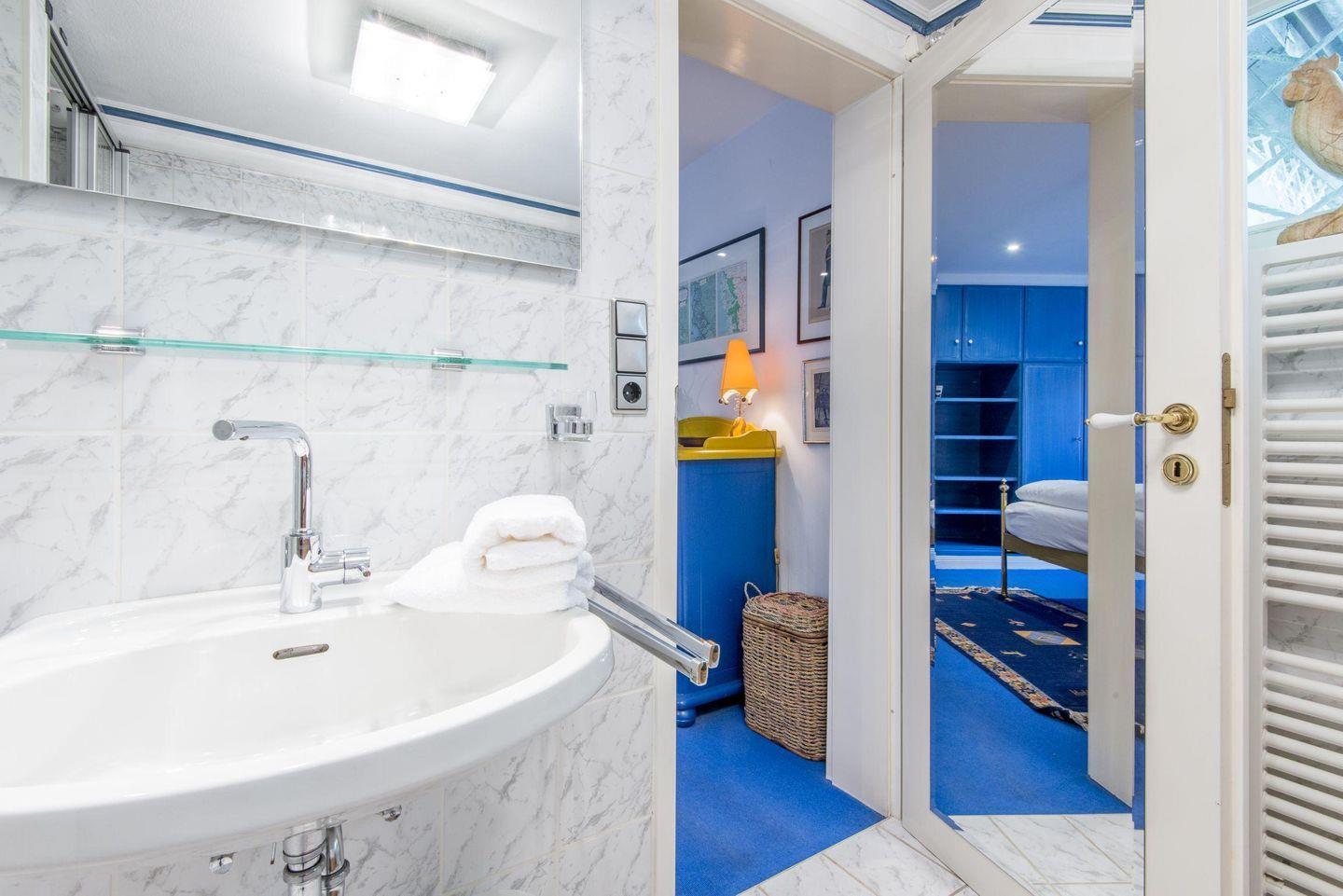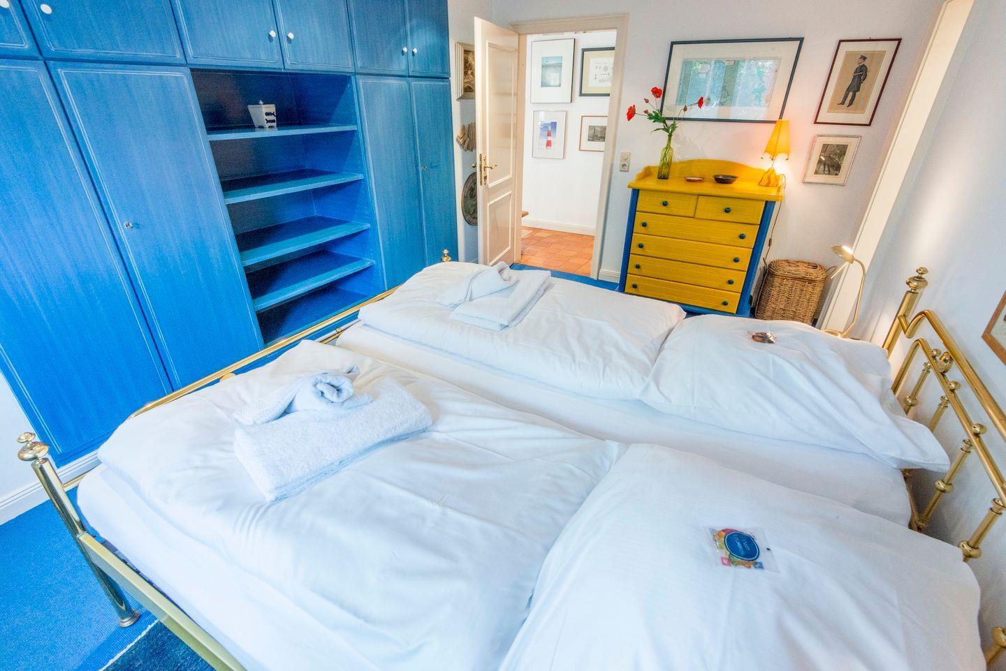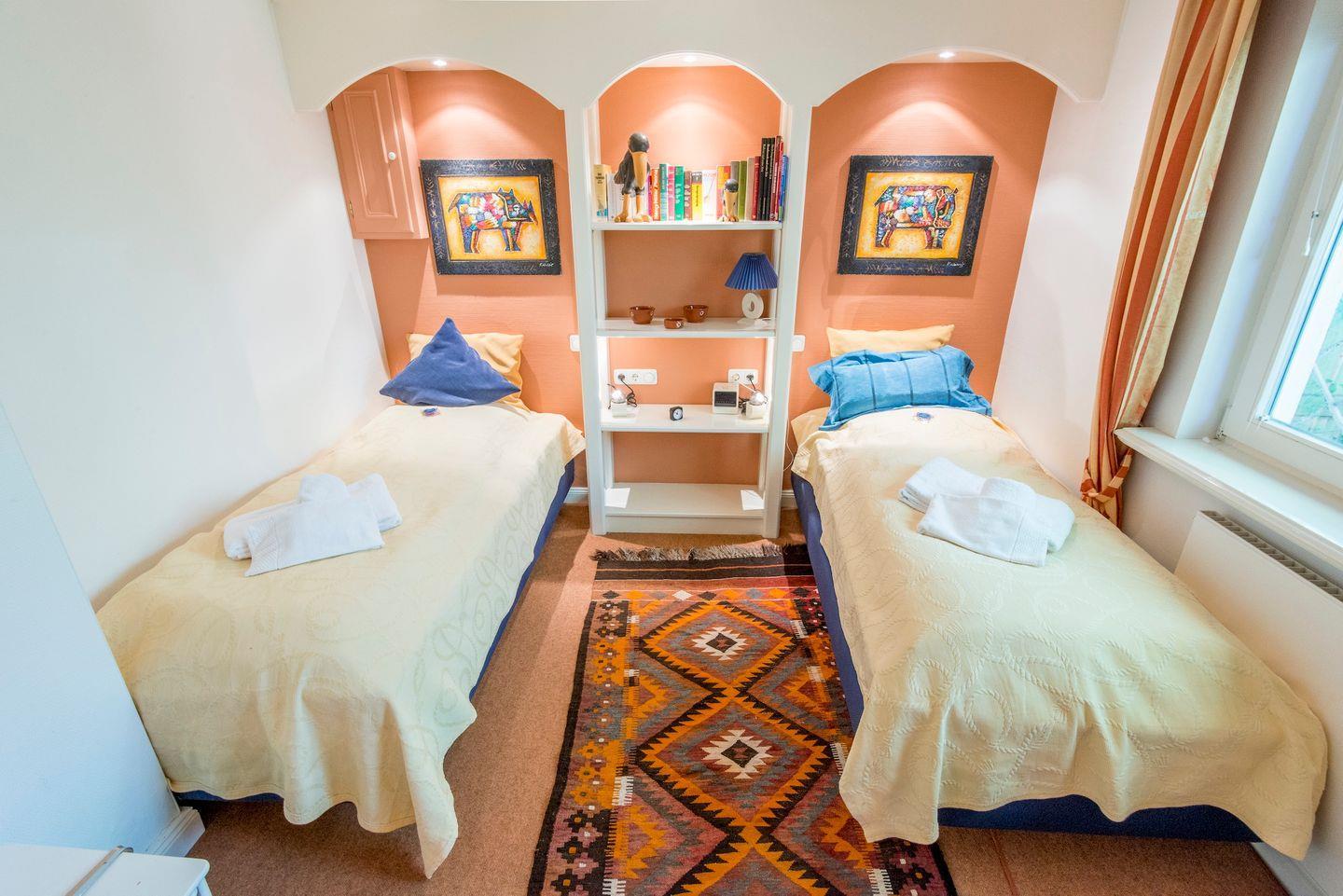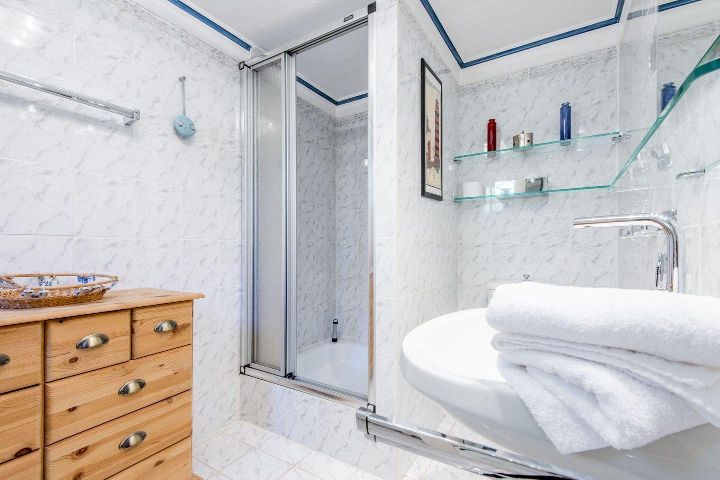 Das zweite Schlafzimmer ist mit zwei Einzelbetten (je 90x200 cm) und einem Kleiderschrank ausgestattet. Auch hier gibt es ein en-suite Badezimmer, welches über eine Badewanne, eine separate Dusche, WC, Handtuchwärmer und Tageslicht verfügt.