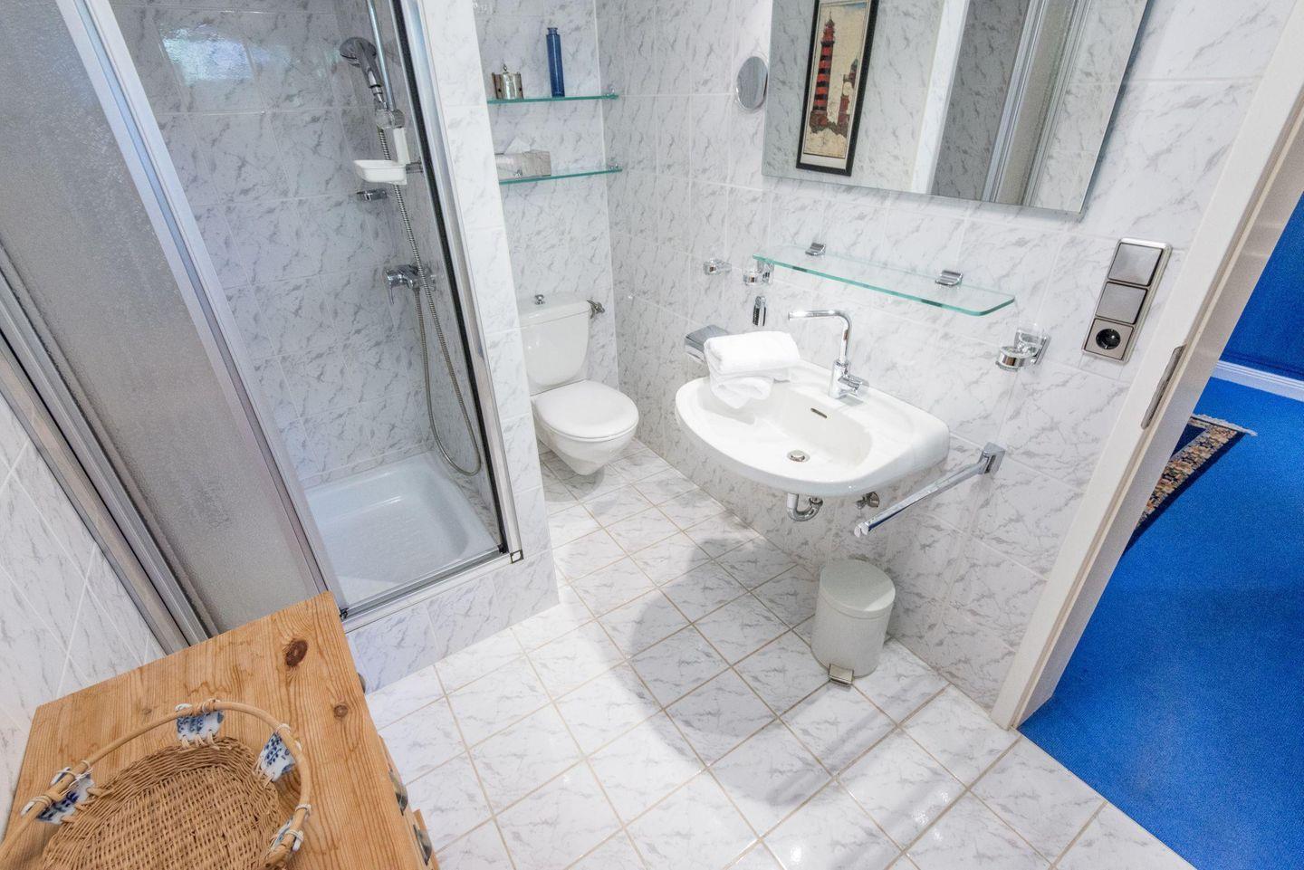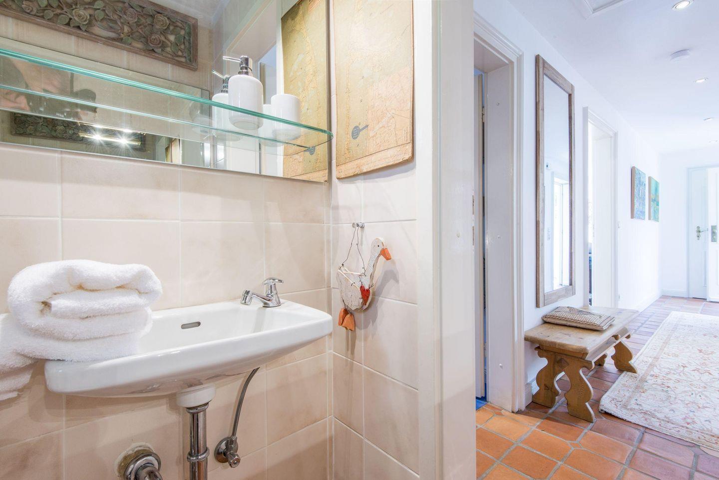 Im Eingangsbereich befindet sich ein Flur mit Garderobe. Ein zusätzliches Gäste-WC sorgt für noch mehr Komfort während Ihres Aufenthalts. WLAN (ohne Gewähr) und zwei PKW-Stellplätze sind vorhanden. Hunde sind willkommen.