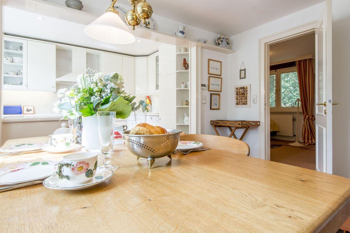 Das Esszimmer bietet einen rustikalen Tisch mit Platz für bis zu 6 Personen und lädt zu geselligen Mahlzeiten ein. Die separate Küche im Landhausstil ist vollständig ausgestattet und verfügt über einen Geschirrspüler sowie weiteren modernen Komfort, um alle kulinarischen Bedürfnisse abzudecken.