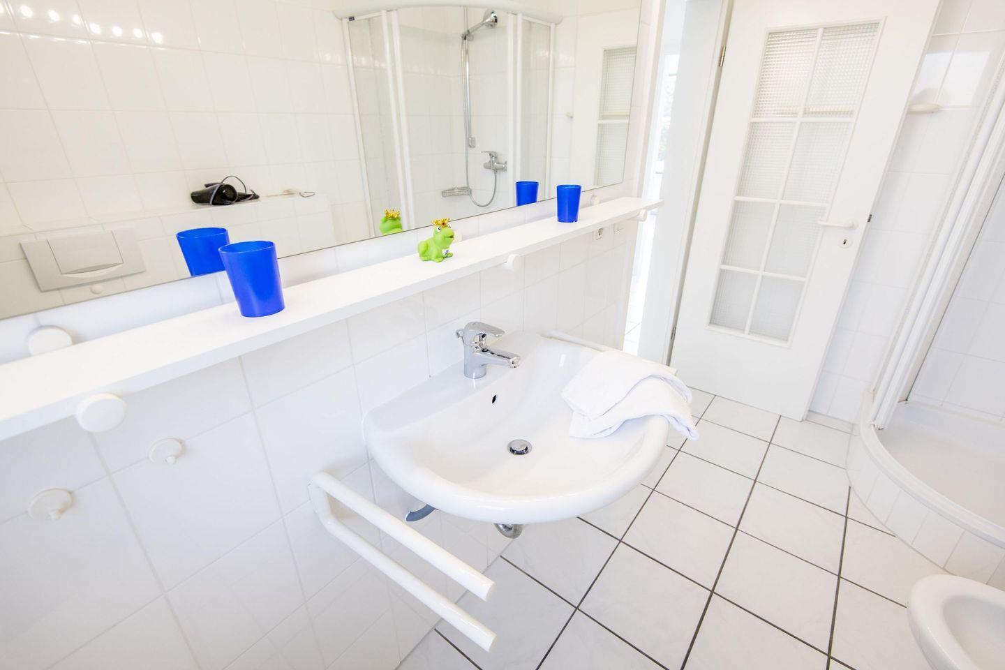 Ein Flur mit Garderobe im Eingangsbereich und eine Abstellkammer mit kostenloser Waschmaschine stehen zur Verfügung. Ein PKW-Stellplatz, Fahrradabstellmöglichkeiten und WLAN (ohne Gewähr) sind ebenfalls vorhanden.