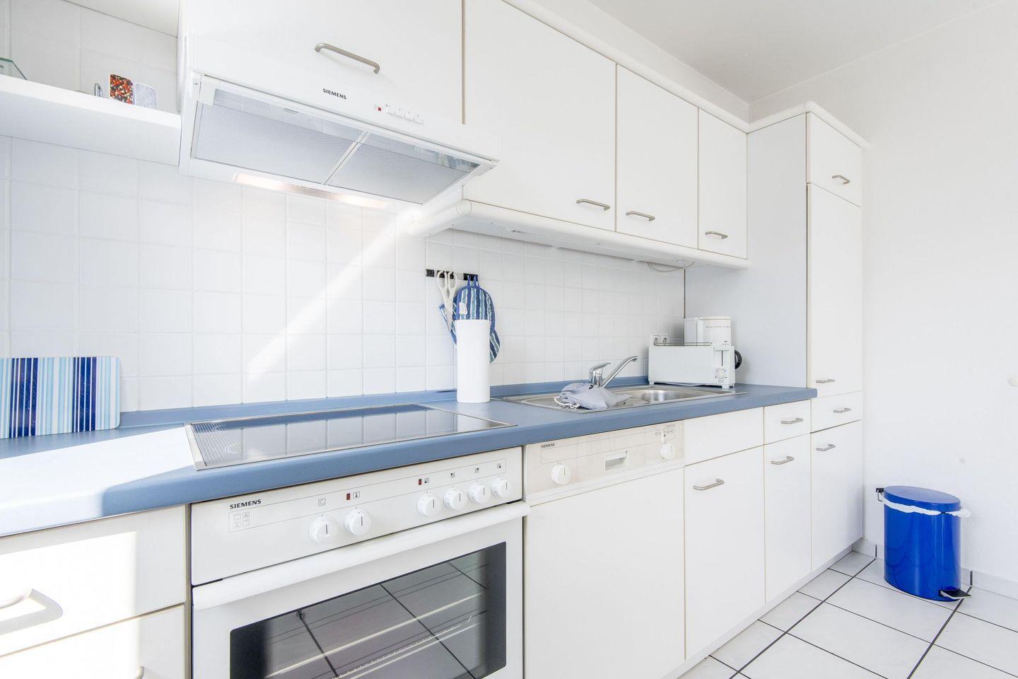 Die offene Küche ist bestens ausgestattet und bietet einen 4-flammigen Herd, Geschirrspüler und allen modernen Komfort, den Sie für Ihre Urlaubsmahlzeiten benötigen.