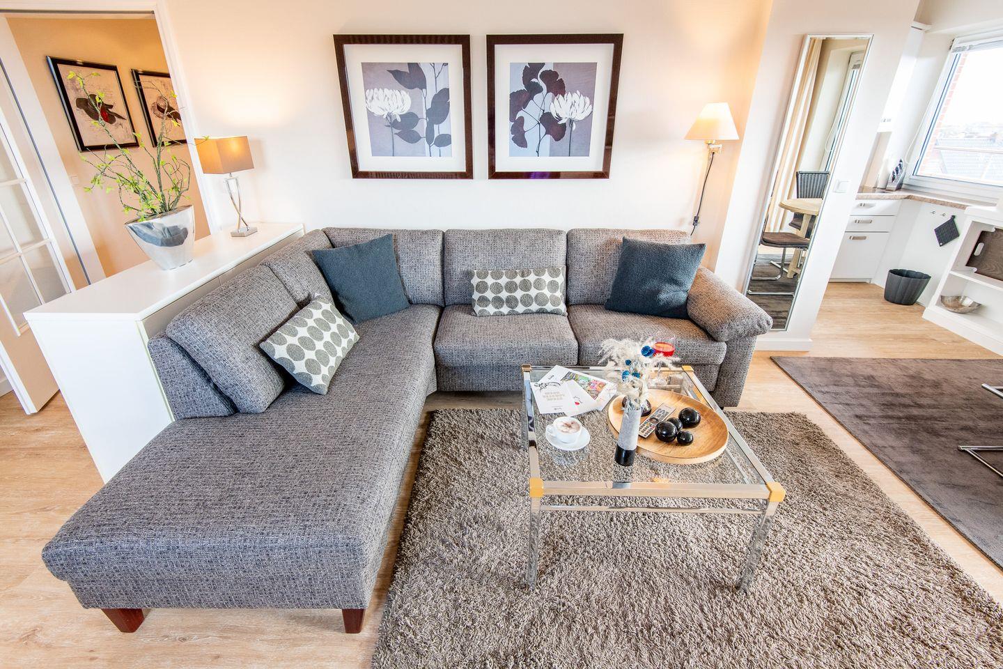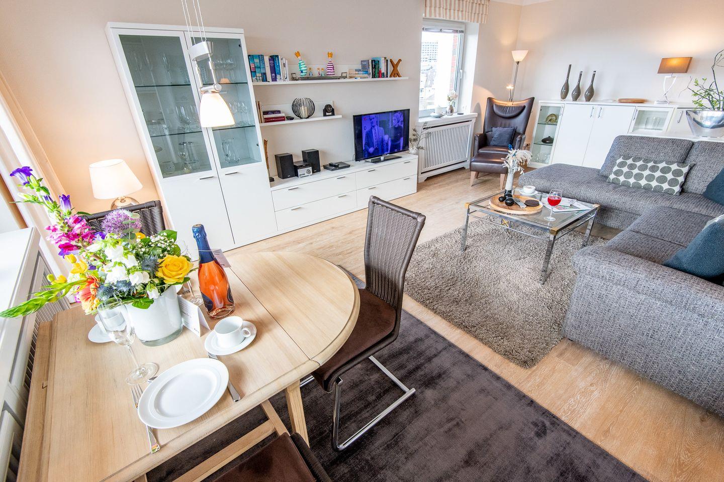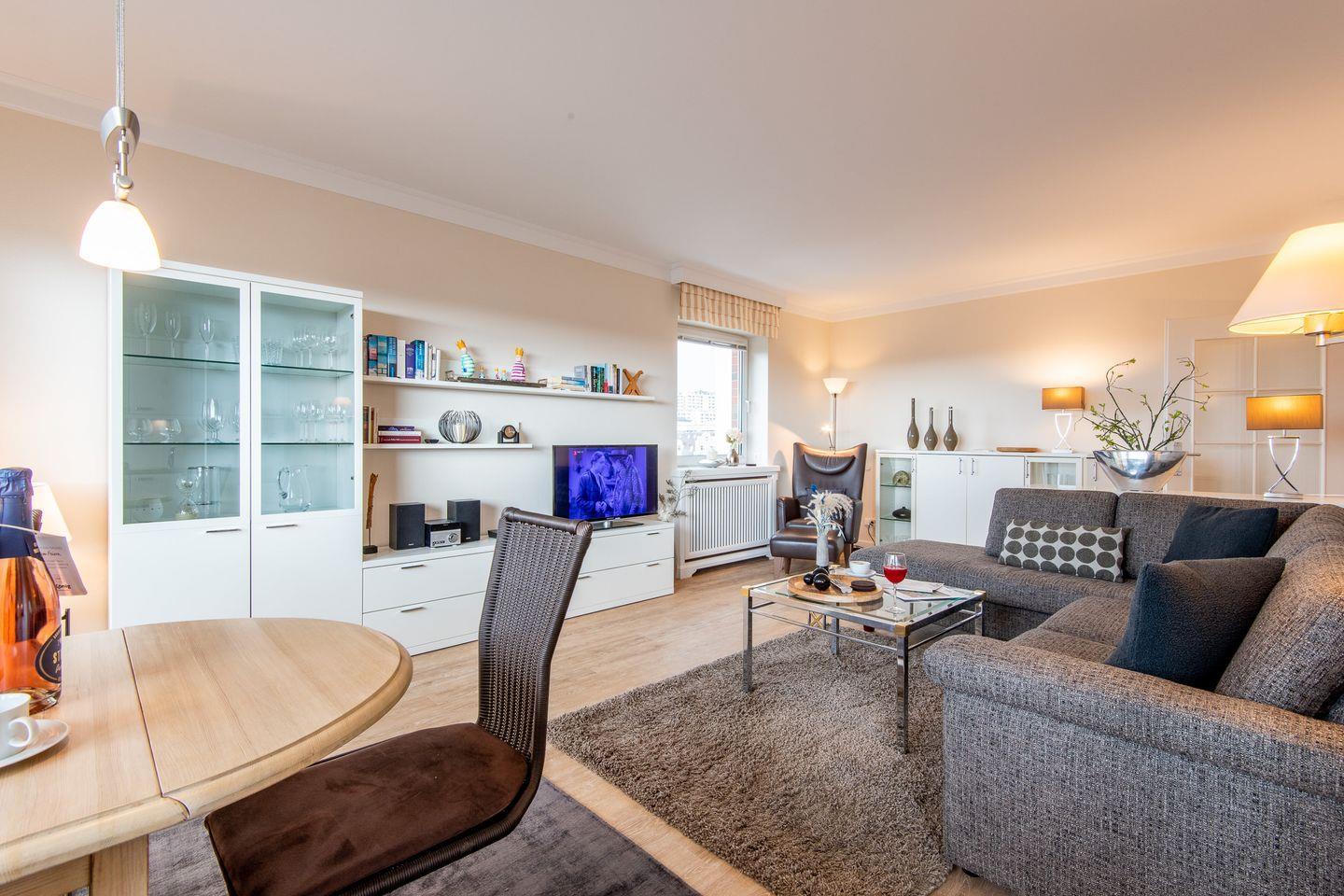 2-Zimmer-Ferienwohnung auf einer Ebene (3. OG) in Westerland mit ca. 61 qm für bis zu 2 Personen.