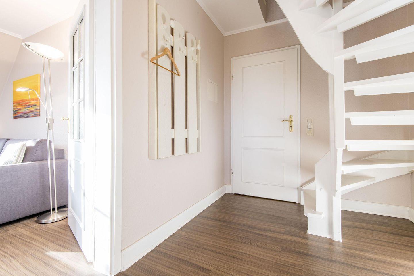 Ein Flur mit Garderobe und Sessel bietet zusätzlichen Komfort. Pkw-Stellplatz ist vorhanden. Die Wohnung bietet zudem WLAN (ohne Gewähr). Waschmaschine und Trockner stehen, zur gemeinsamen Nutzung, im Haus zur Verfügung.