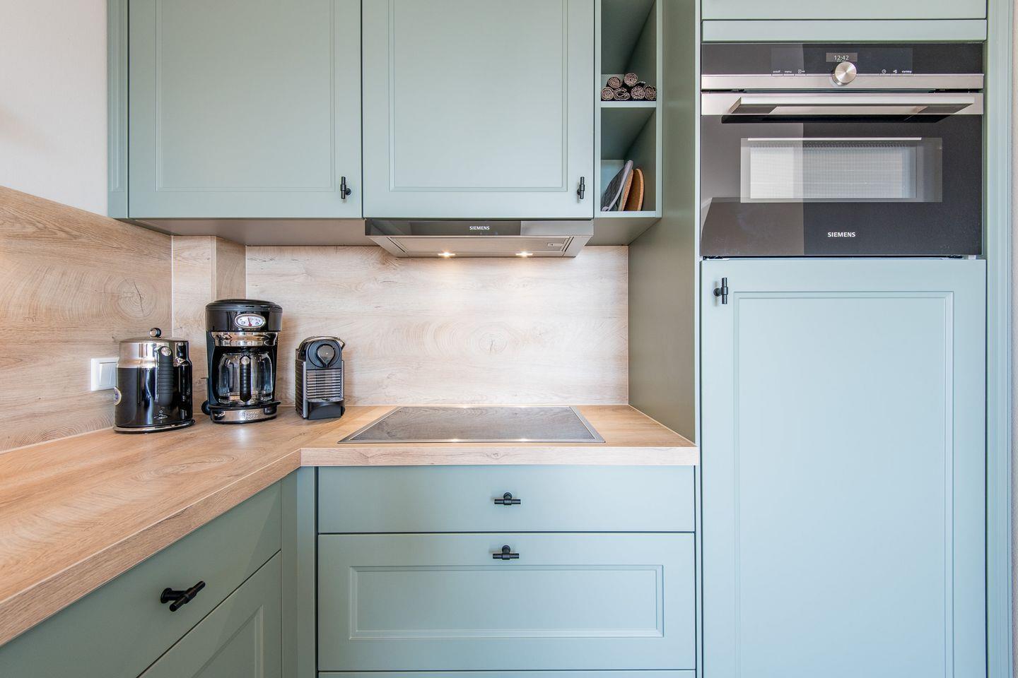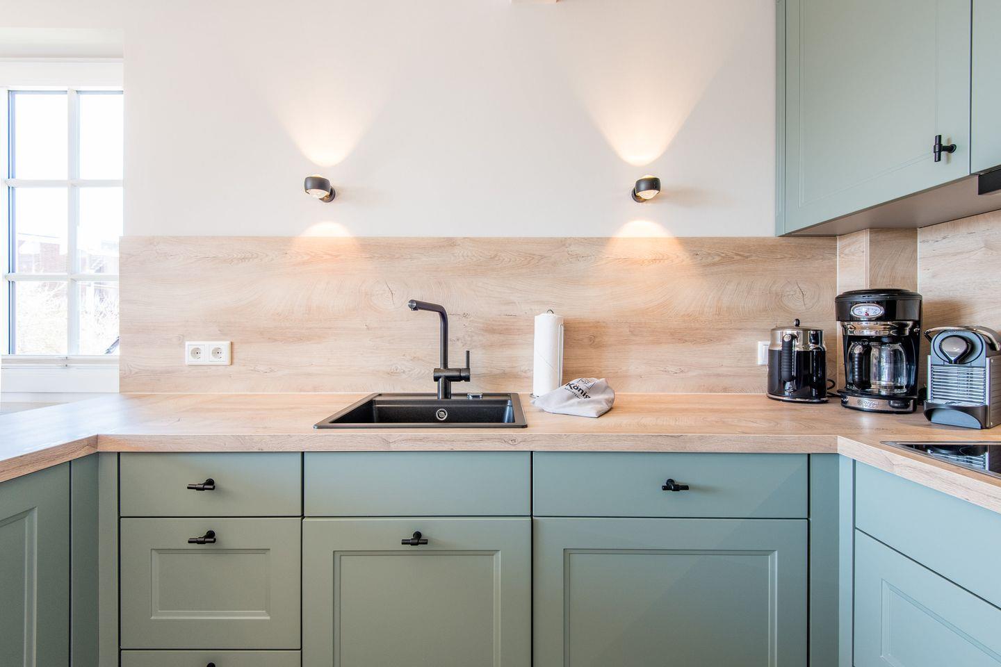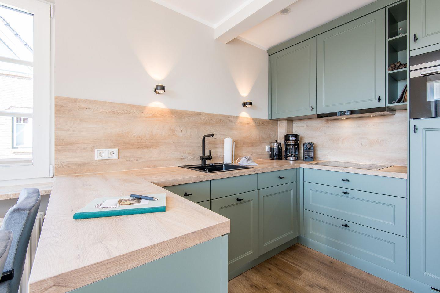 Die offene, voll ausgestattete Küche verfügt über einen Geschirrspüler, einen Backofen und alles, was Sie für Ihre Urlaubsküche benötigen.