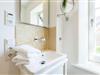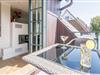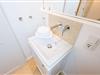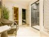 Das helle Badezimmer verfügt über eine ebenerdige Regendusche, WC, Handtuchwärmer und Tageslicht. Zusätzlich gibt es ein Gäste-WC mit Handtuchwärmer und Waschtrockner, was besonders für längere Aufenthalte praktisch ist.