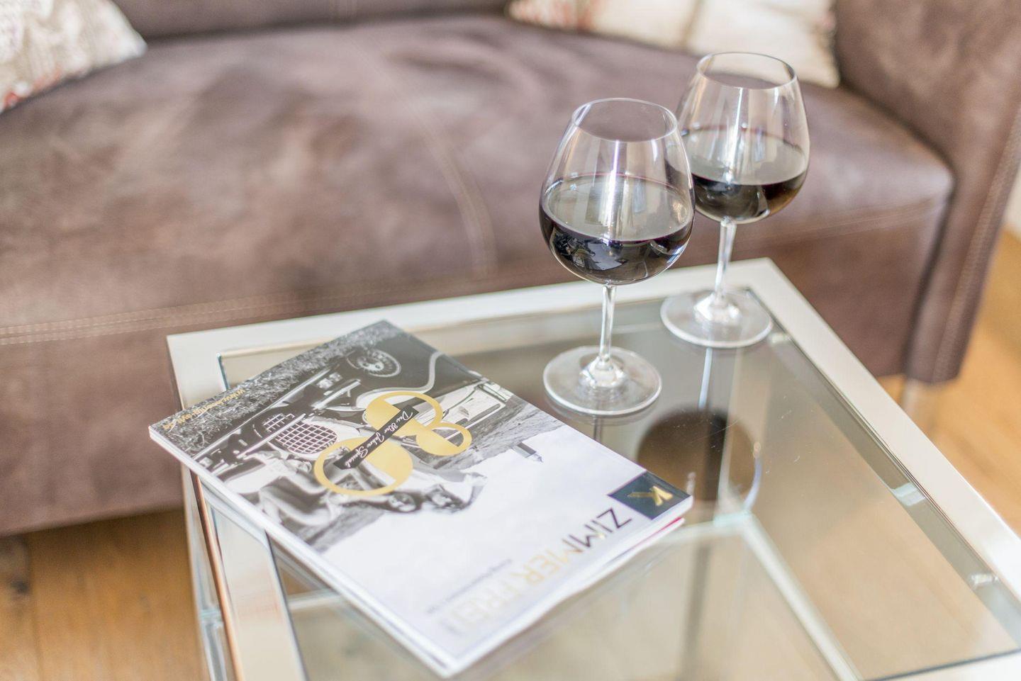 Das stilvoll eingerichtete Wohnzimmer bietet eine gemütliche Sofaecke, einen Sessel, einen großen TV sowie einen Gaskamin, der für behagliche Stunden sorgt. Der angrenzende Essbereich für 4 Personen und der direkte Zugang zum sonnigen, möblierten Balkon nach Süden laden zu entspannten Mahlzeiten und Sonnenstunden ein.