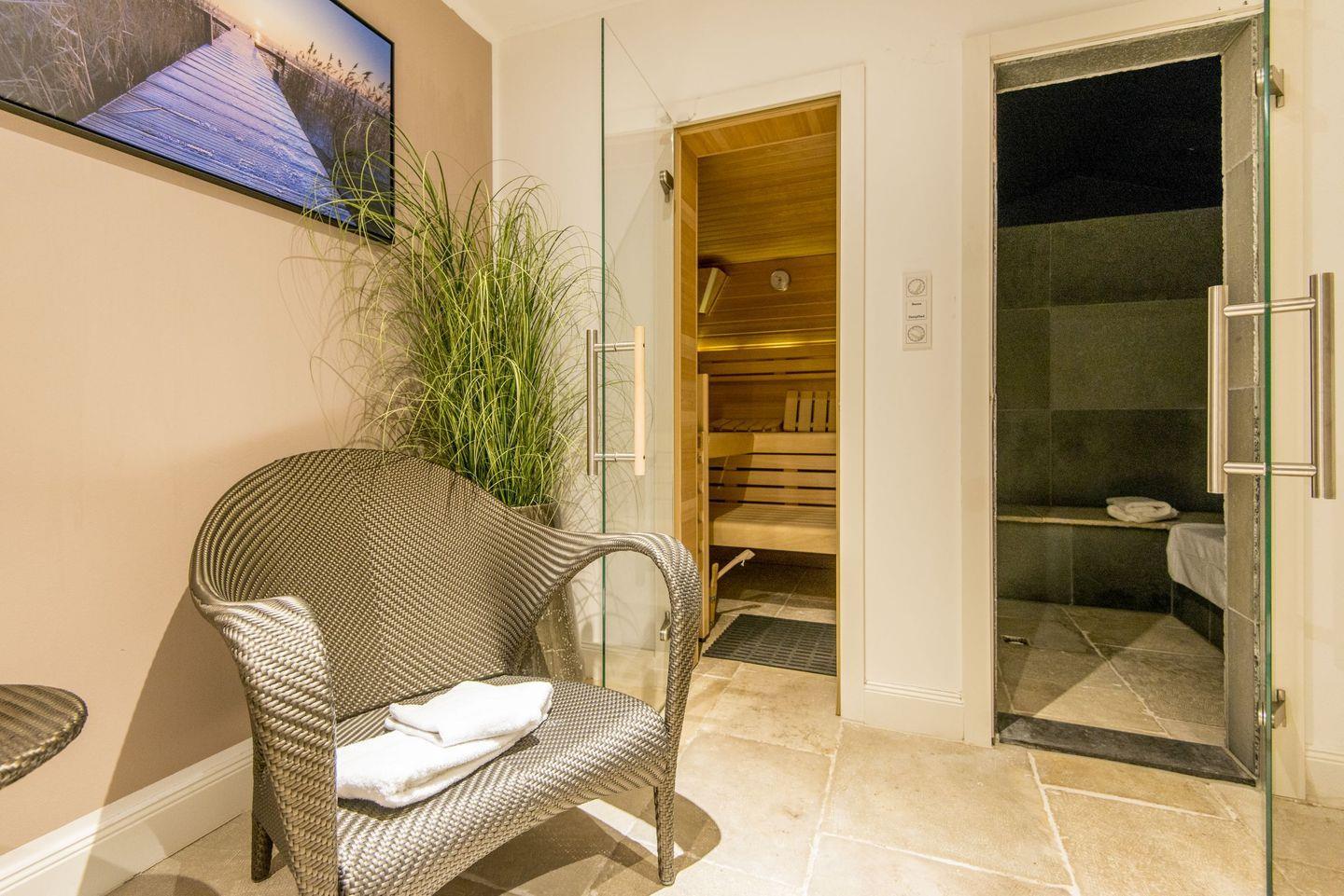 Im Haus steht ein gemeinschaftlicher Wellnessbereich mit Sauna, Dampfbad, Schwalldusche und Ruheraum zur Verfügung, ideal für Erholung nach einem Tag am Strand oder einer Fahrradtour. Ein Pkw-Stellplatz und WLAN (ohne Gewähr) sind vorhanden. Ein Fahrradverleih und eine Bäckerei befinden sich in direkter Umgebung. Die Wohnung ist etwa 950 m vom Strand und ca. 10 Gehminuten vom Stadtzentrum entfernt, sodass Sie die Highlights Westerlands bequem zu Fuß erreichen können.