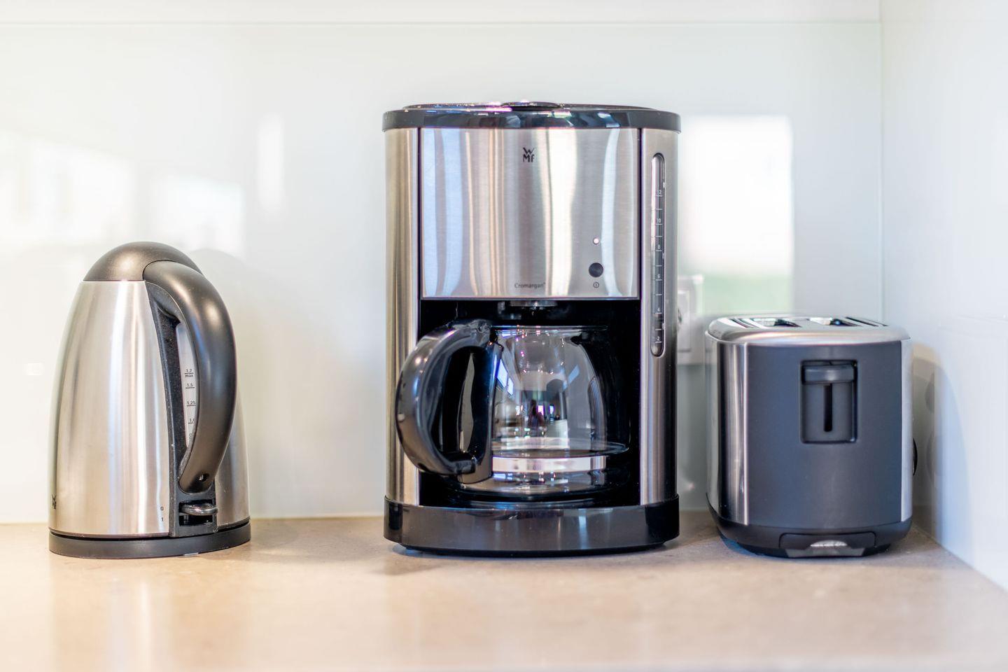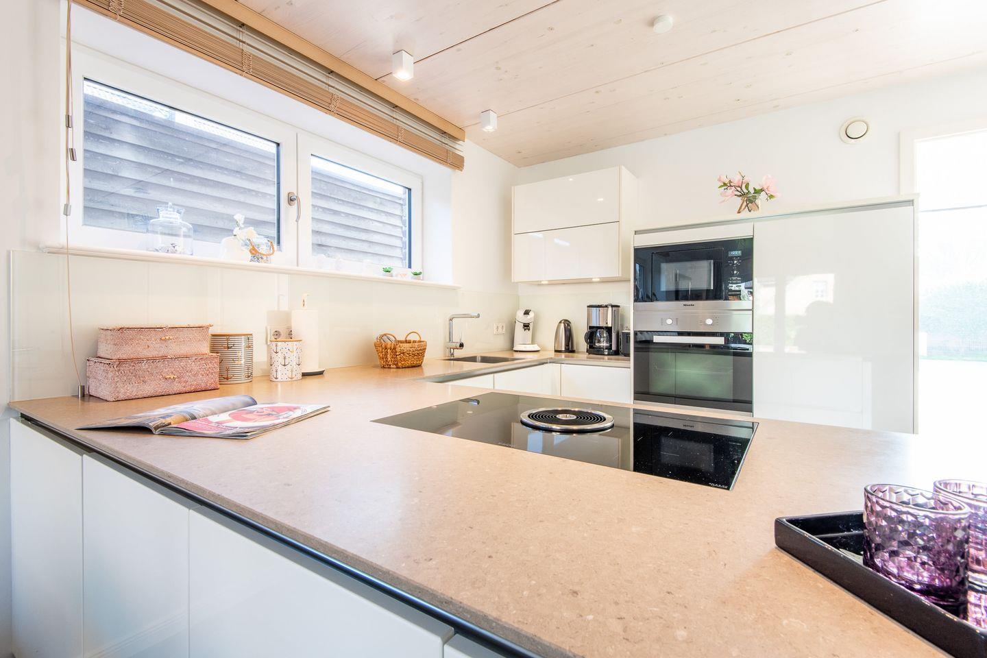 Die offene Küche ist mit einem modernen Induktionsherd, Geschirrspüler, Filterkaffeemaschine und weiteren Annehmlichkeiten ausgestattet, sodass Sie hier bequem Ihre Lieblingsgerichte zubereiten können.