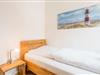Das erste Schlafzimmer ist mit einem komfortablen Doppelbett (2x100x200 cm) ausgestattet und verfügt über einen TV sowie direkten Zugang zum sonnigen Balkon nach Süden. Das zweite Schlafzimmer bietet ein Einzelbett (90x200 cm), ideal für eine erholsame Nachtruhe. Im dritten Schlafzimmer befinden sich zwei gemütliche Einzelbetten (je 90x200 cm), die besonders für Kinder geeignet sind und eine wohnliche Rückzugsmöglichkeit bieten.