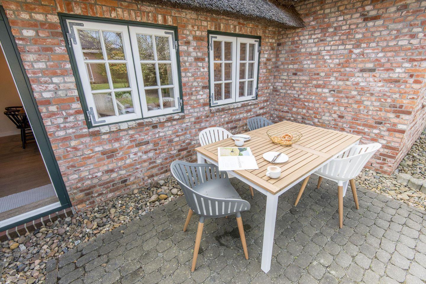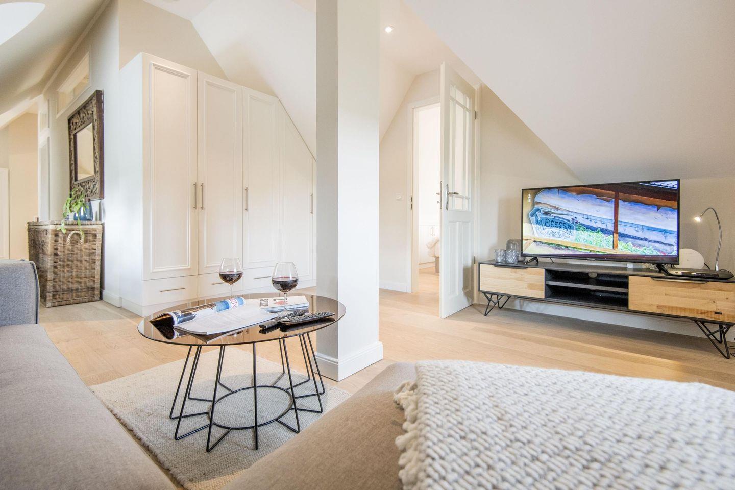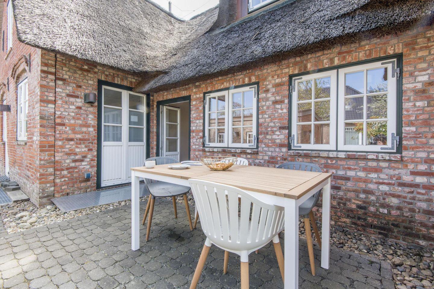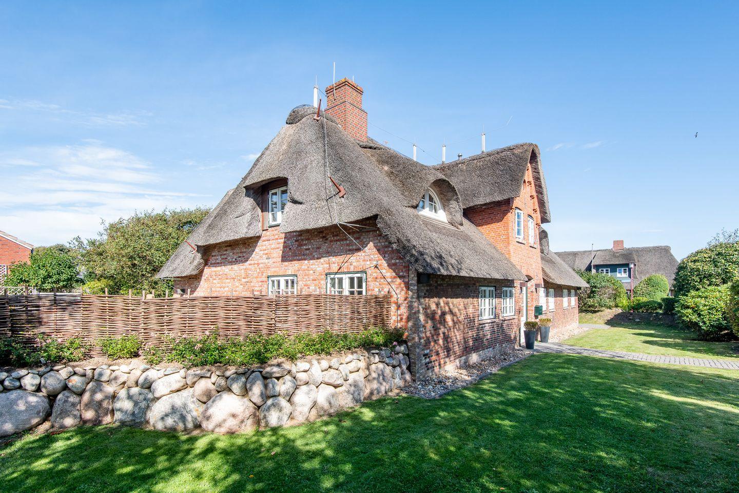 Diese geschmackvoll eingerichtete 3-Zimmer-Ferienwohnung im 'Huus Trift' bietet auf ca. 80 m² und zwei Ebenen exklusiven Komfort für bis zu 4 Personen. Das historische Reetdach-Anwesen in zentraler Lage in Westerland verbindet ein gemütliches Ambiente mit moderner Ausstattung und stilvoller Einrichtung. Die Nichtraucherwohnung bietet dank hochwertiger Harman und Kardon Bluetooth Lautsprecher ein perfektes Klangerlebnis. Hunde sind herzlich willkommen.