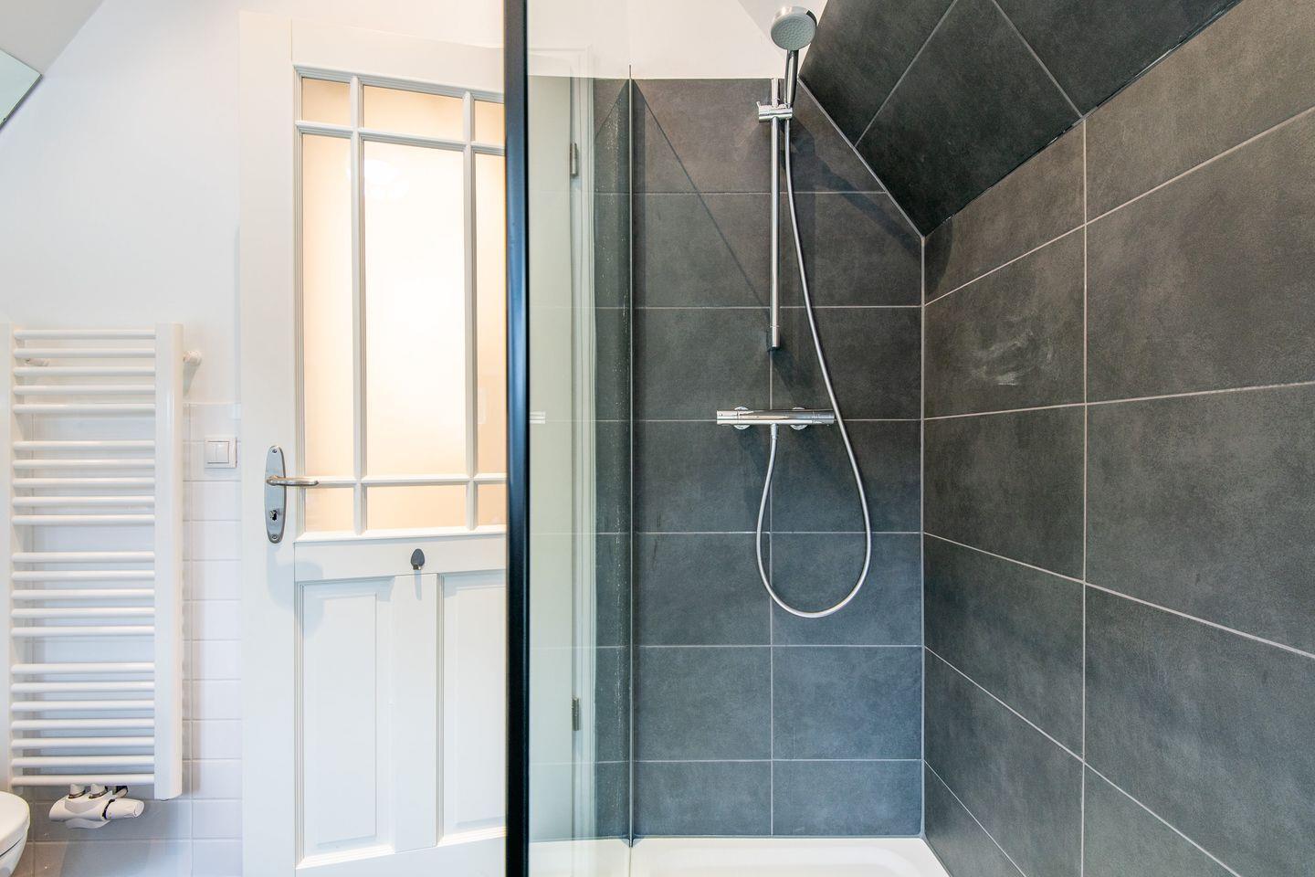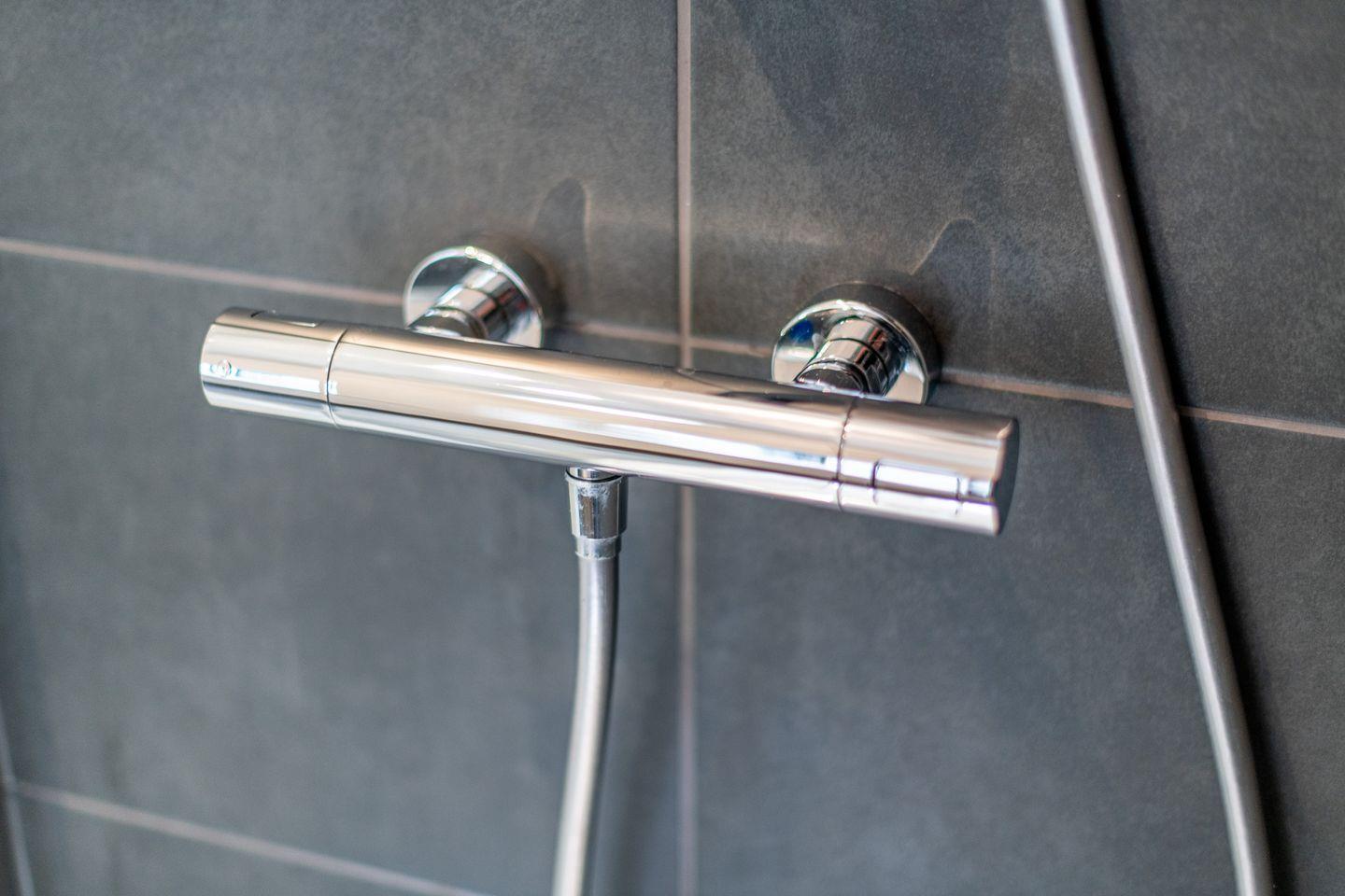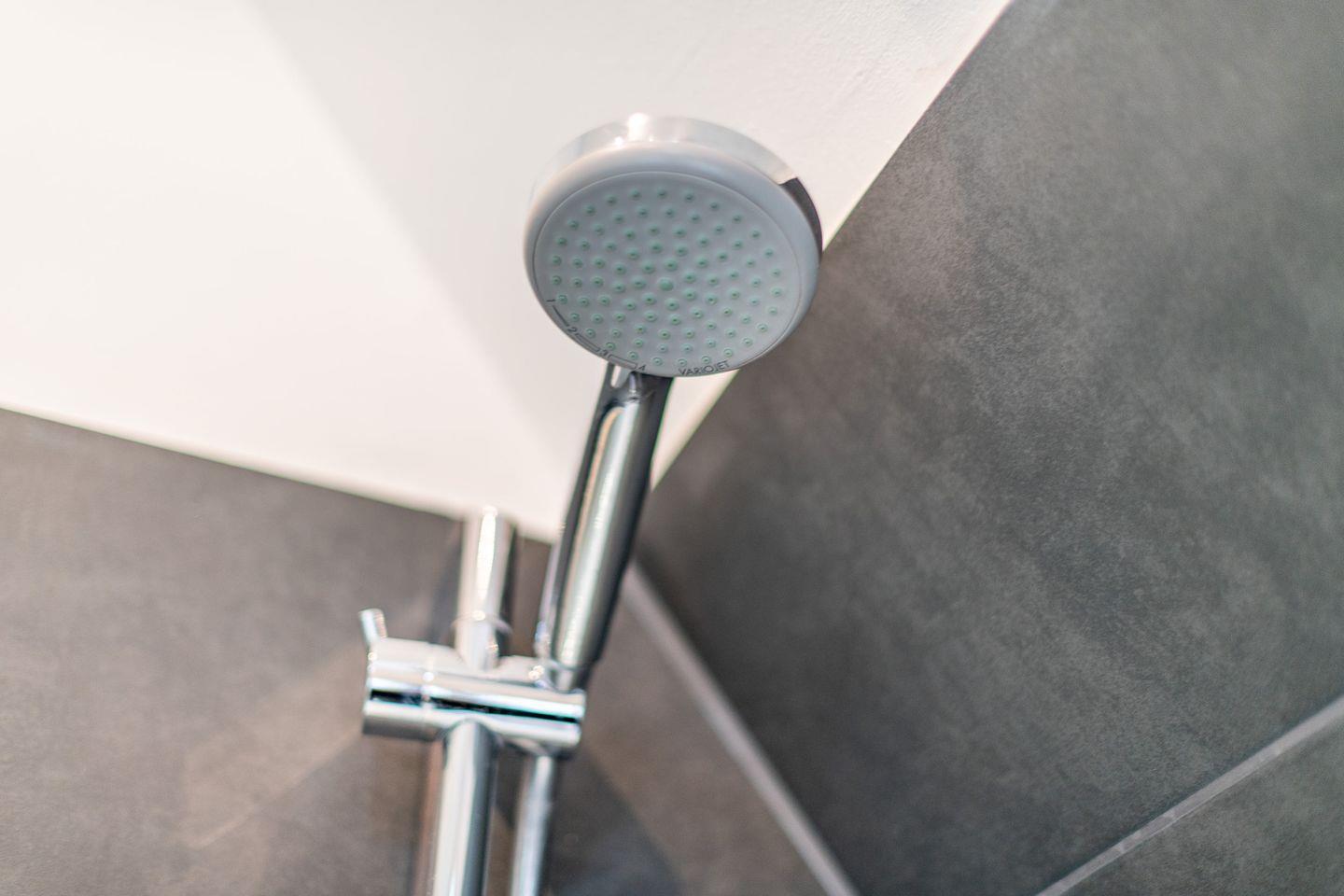 Das helle Badezimmer ist mit einer Dusche, WC, Handtuchwärmer und Föhn ausgestattet und bietet Tageslicht für einen frischen Start in den Tag.