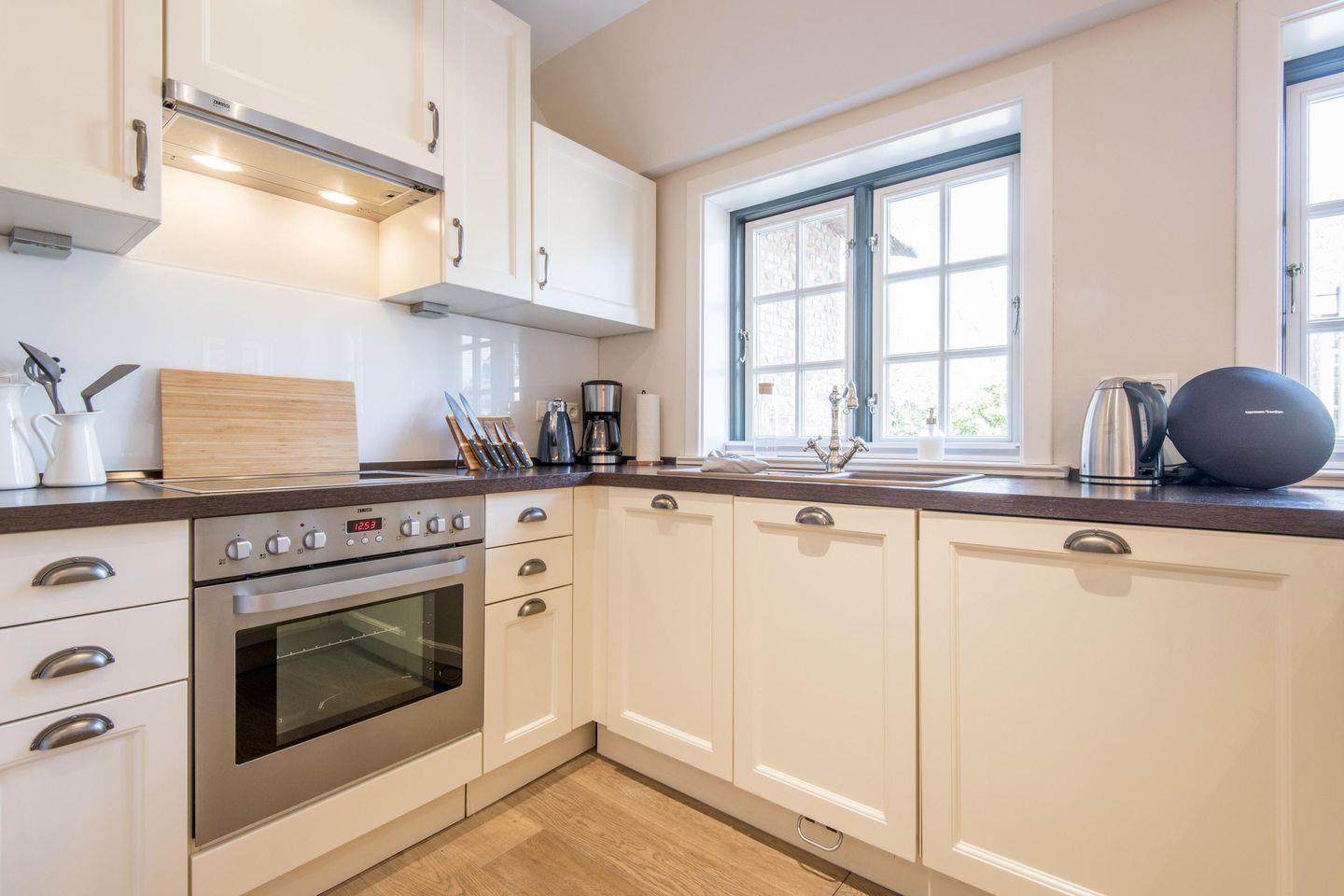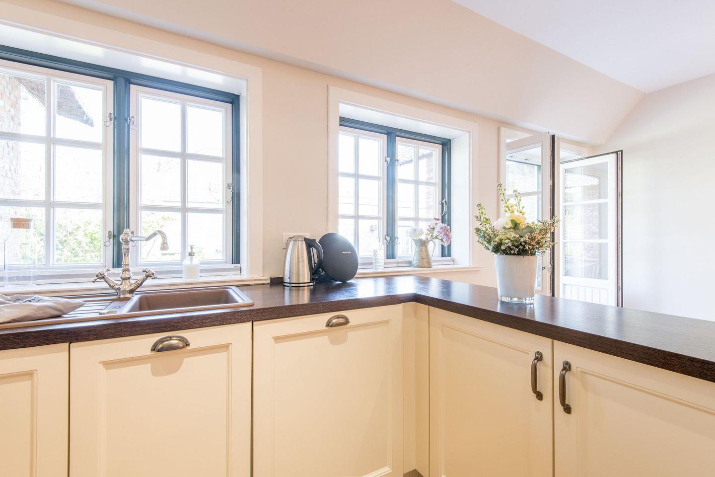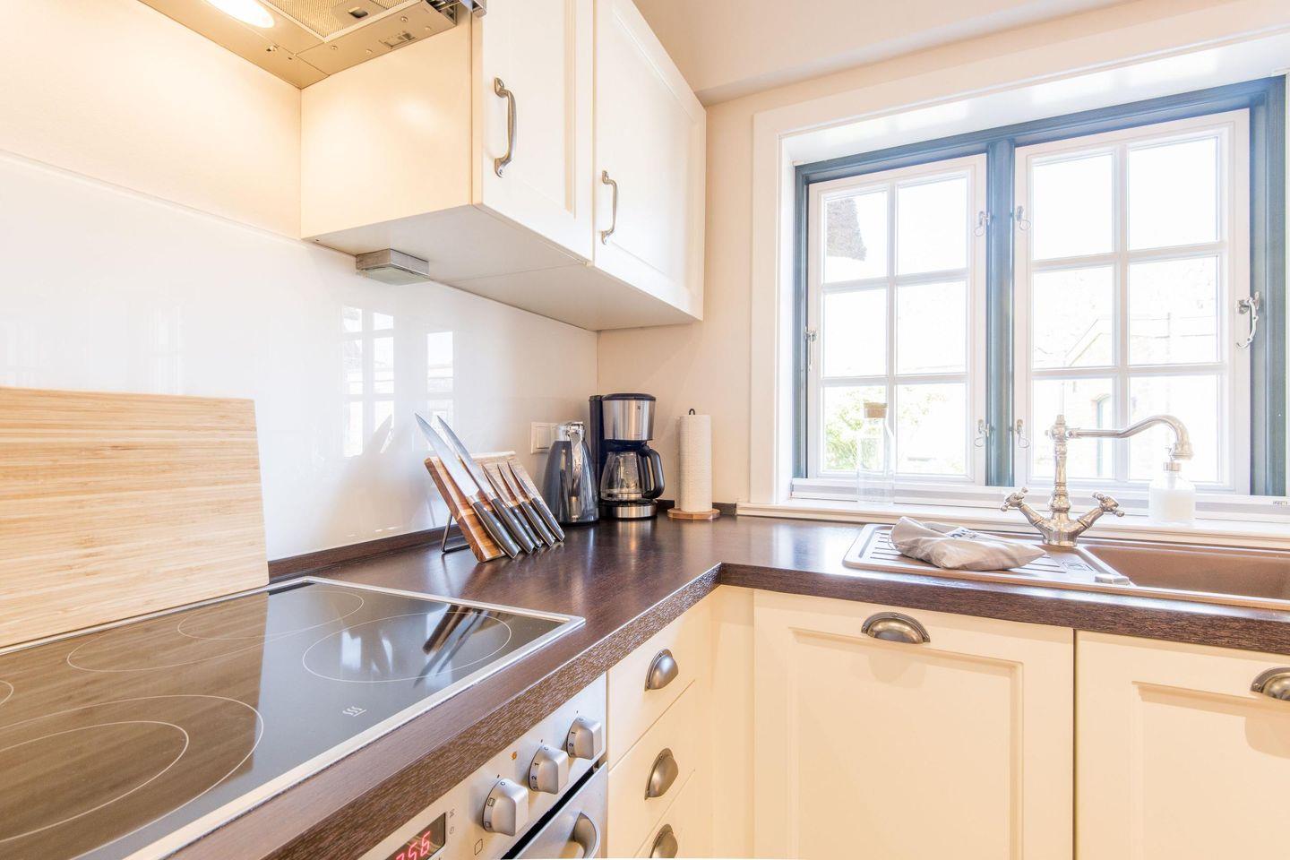Die moderne, offen gestaltete Küche verfügt über einen Induktionsherd, eine Filterkaffeemaschine und eine komfortable Sitzecke für bis zu 6 Personen. Hier ist jeder erdenkliche Komfort geboten, sodass die Selbstversorgung leichtfällt und Spaß macht.