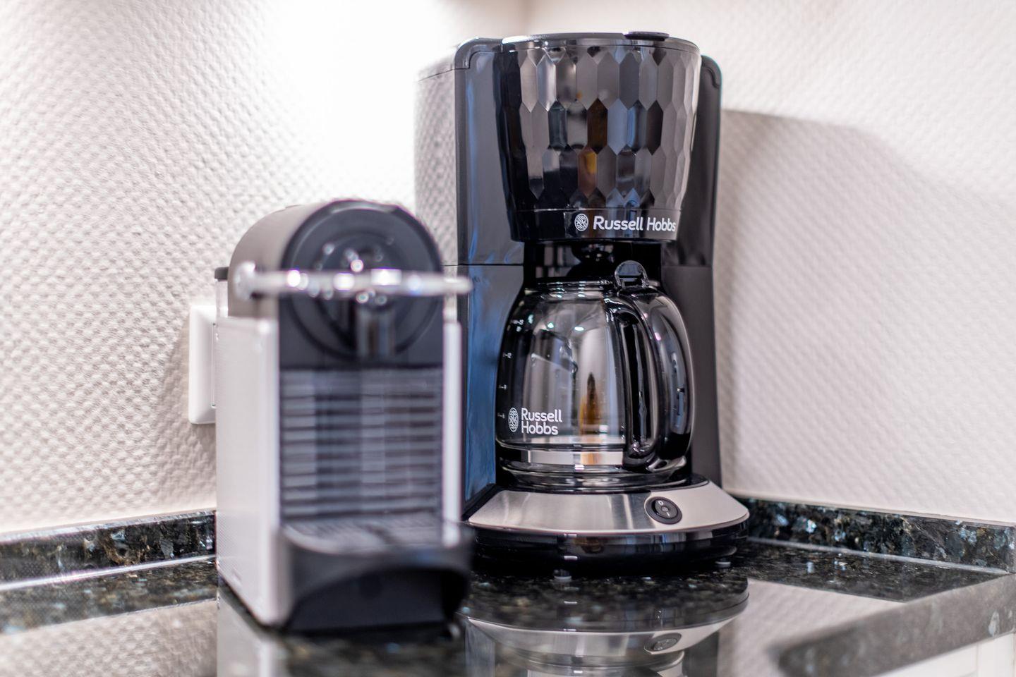 Die separate Hochglanzküche besticht durch eine elegante Granitarbeitsplatte und bietet modernen Komfort für alle, die auch im Urlaub gerne kochen. Sie ist mit einem Cerankochfeld, Geschirrspüler und Filterkaffeemaschine voll ausgestattet und ermöglicht die Zubereitung Ihrer Lieblingsgerichte.