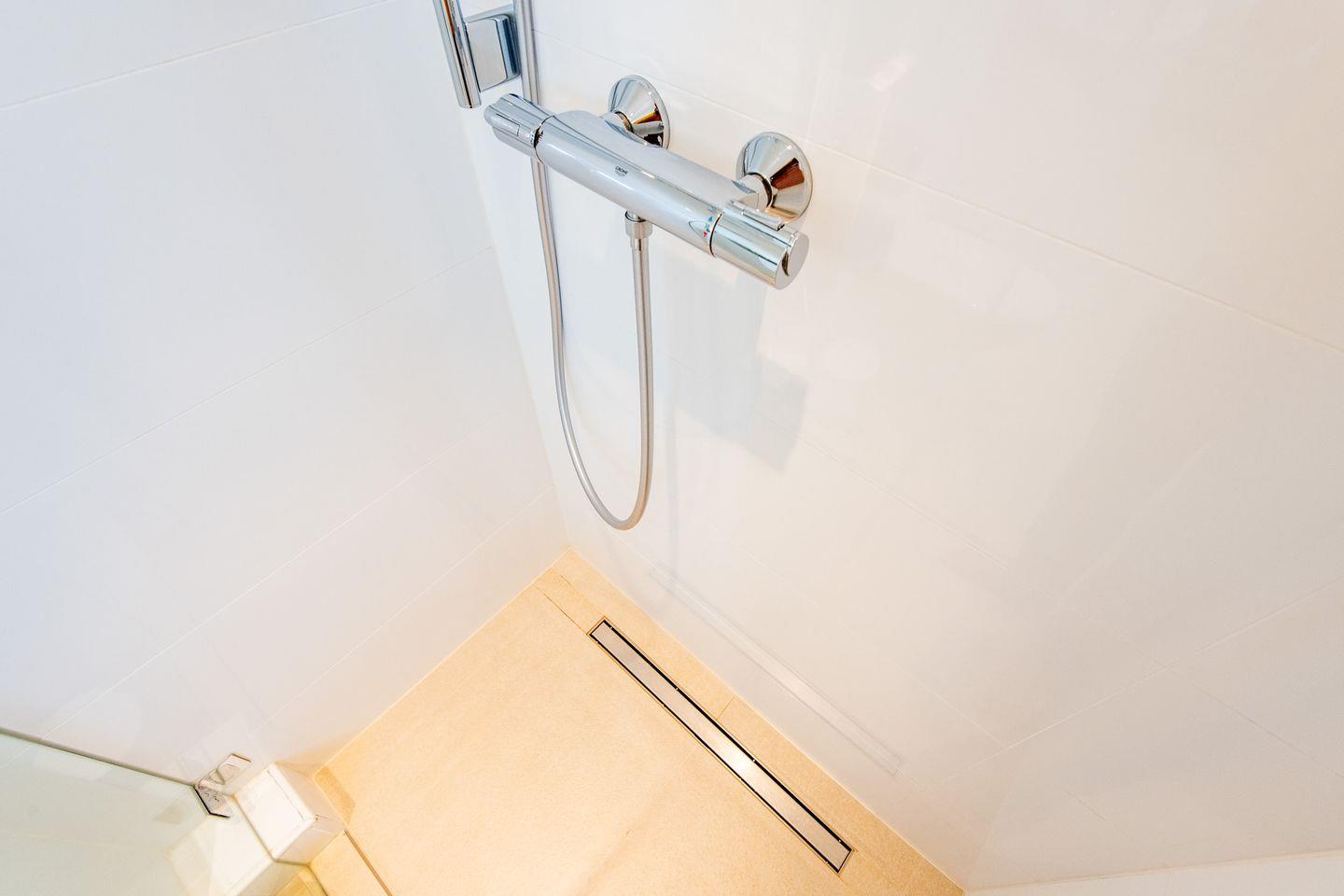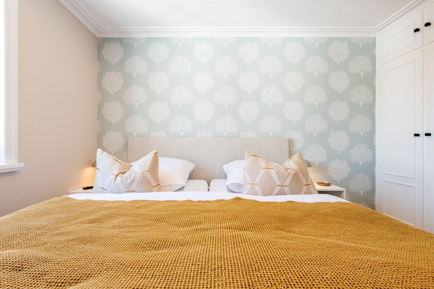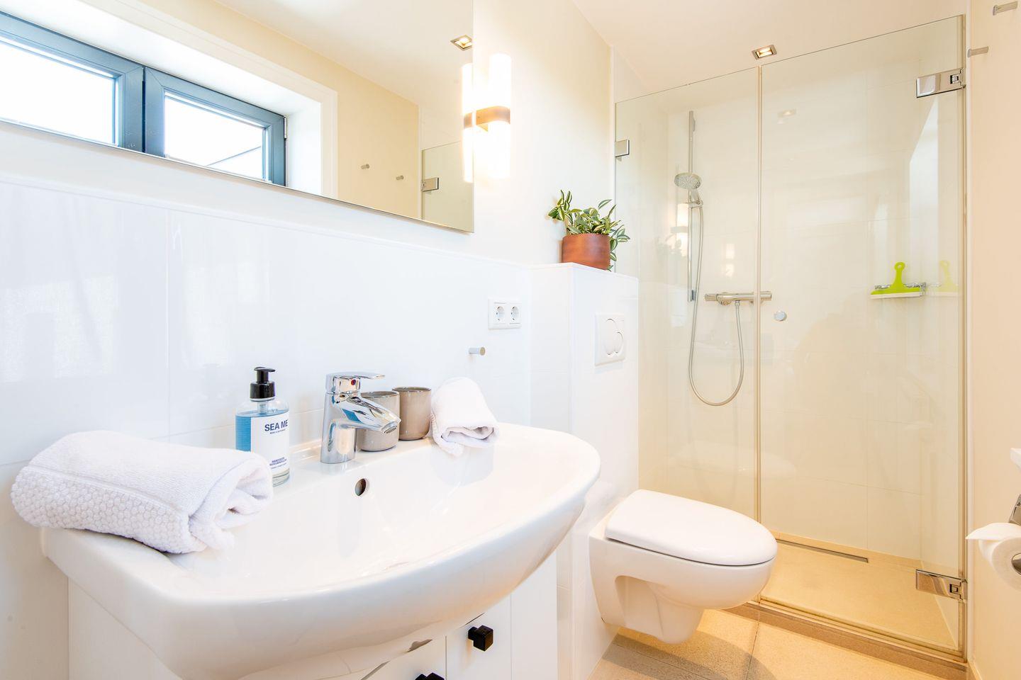 Das Schlafzimmer ist mit einem komfortablen Boxspringbett (180x200 cm) ausgestattet und bietet einen geräumigen Kleiderschrank, der ausreichend Platz für Ihre Garderobe bereitstellt. Das Badezimmer verfügt über eine Dusche, WC, Föhn und Handtuchwärmer, um Ihnen nach einem Tag am Strand den nötigen Komfort zu bieten.
