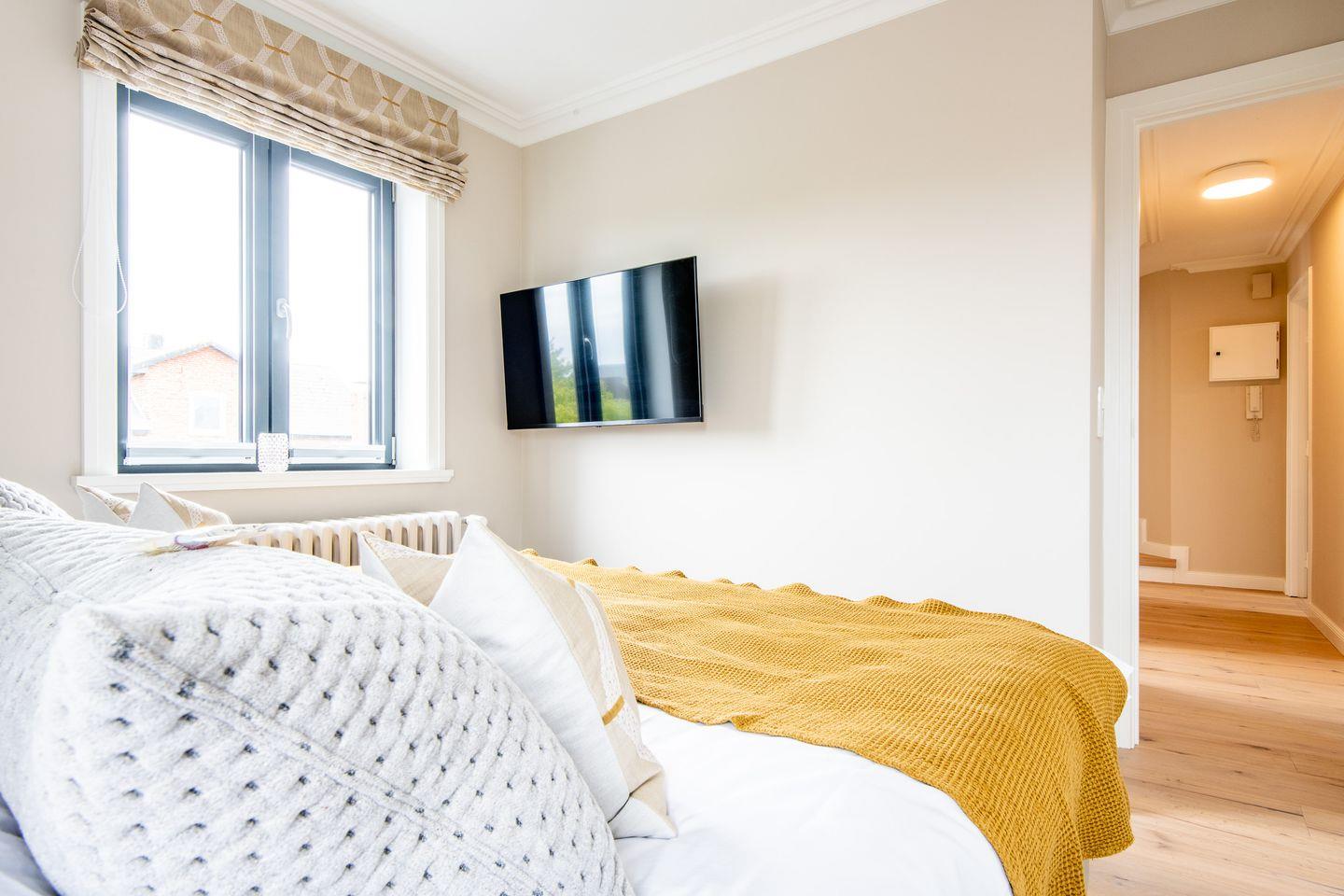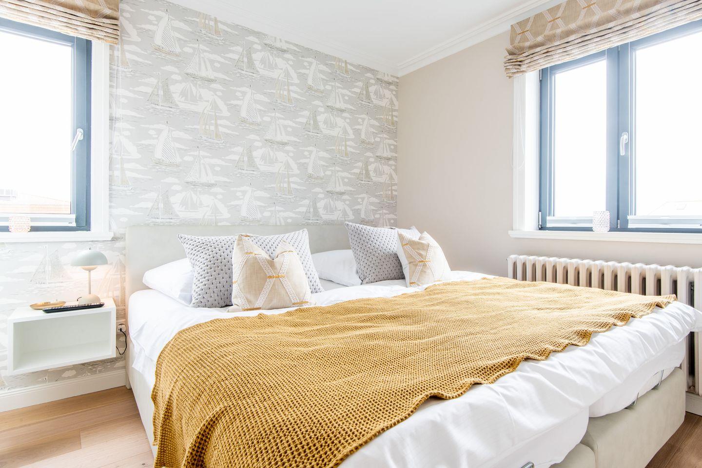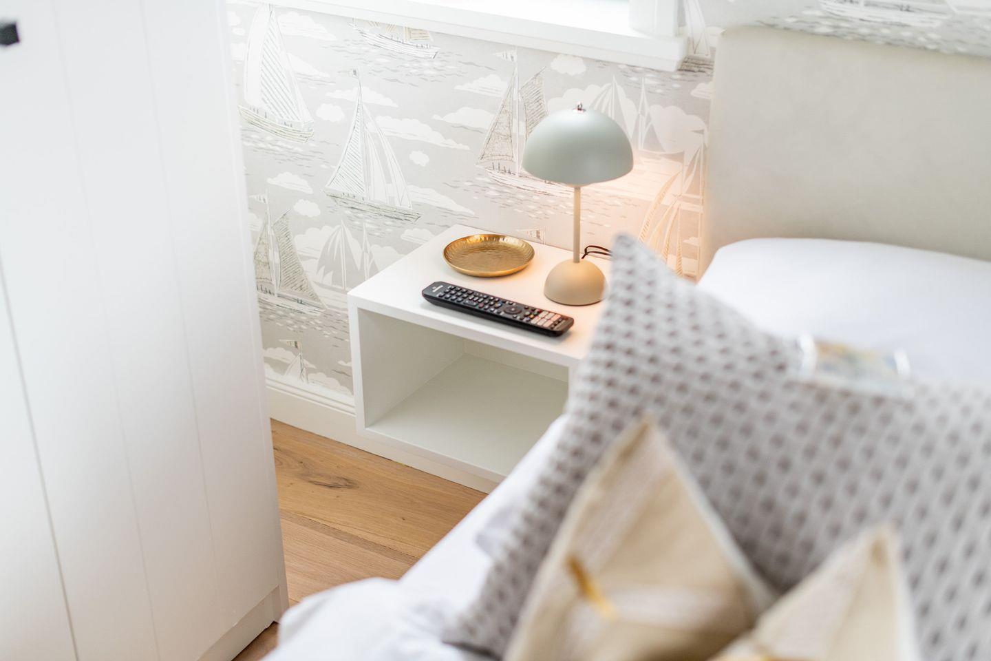 Das Hauptschlafzimmer ist mit einem komfortablen Boxspringbett (180x200 cm) und einem geräumigen Kleiderschrank ausgestattet, sodass Sie sich wie zu Hause fühlen können. Das zweite Schlafzimmer bietet ein Einzelbett (90x200 cm) und einen weiteren Kleiderschrank – perfekt für eine zusätzliche Person oder ein Kind.