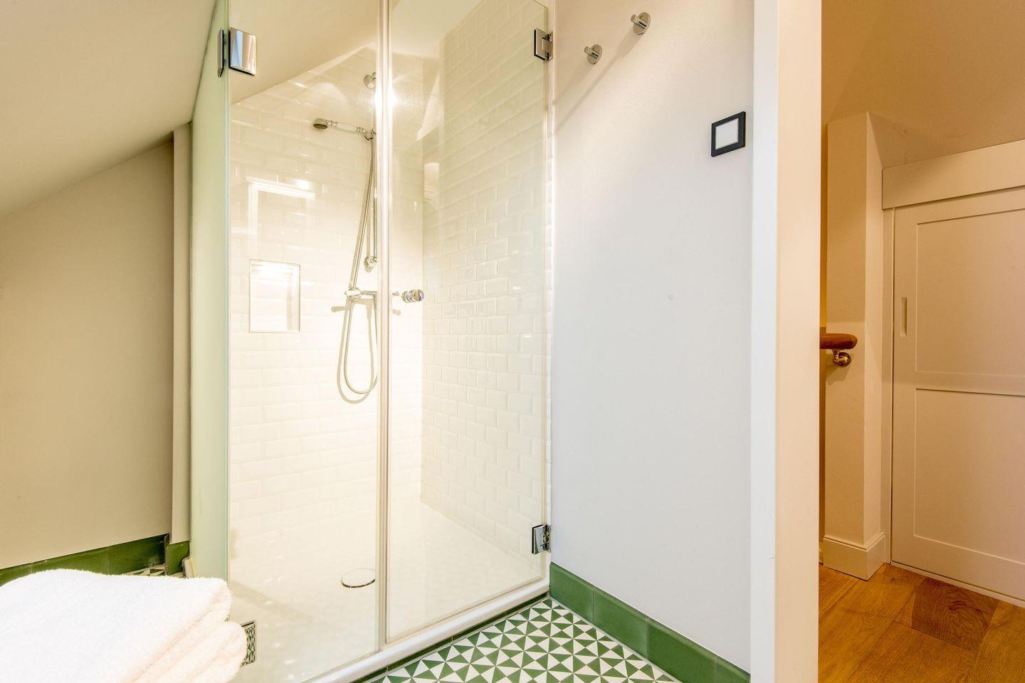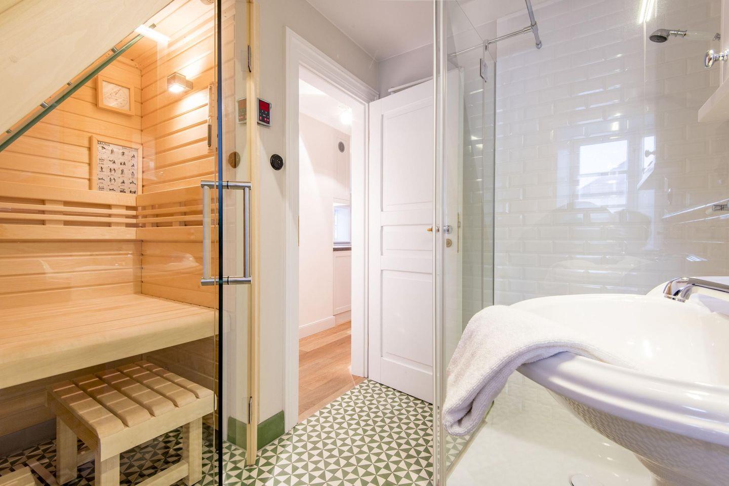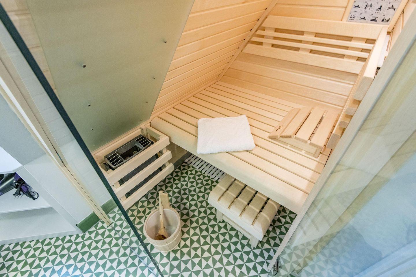 Das erste Badezimmer überzeugt mit einer ebenerdigen Dusche, WC, Handtuchwärmer, Föhn und einem Fenster, das für angenehmes Tageslicht sorgt. Ein weiteres Highlight ist die finnische Sauna – ideal für entspannte Stunden nach einem langen Strandtag. Das zweite Badezimmer bietet ebenfalls eine ebenerdige Dusche, WC, Handtuchwärmer und Tageslicht und rundet das luxuriöse Angebot ab.
