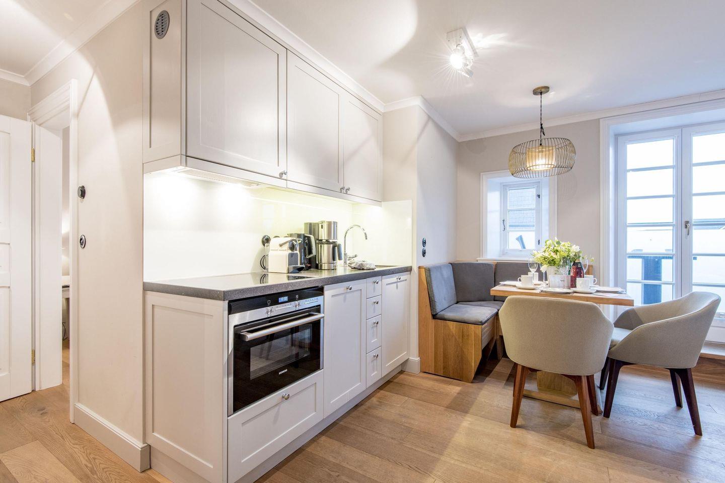 Die offene Küche fügt sich perfekt in den Wohnbereich ein und ist mit einem Induktionsherd, Geschirrspüler und weiteren hochwertigen Geräten ausgestattet, die die Zubereitung von Mahlzeiten zum Vergnügen machen. Hier finden Sie alles, was Sie für eine komfortable Selbstversorgung benötigen.