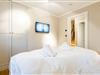 Das erste Schlafzimmer bietet ein großzügiges Doppelbett (180x200 cm), einen geräumigen Einbauschrank und einen TV. Das zweite Schlafzimmer, ebenfalls stilvoll eingerichtet, verfügt über ein komfortables Doppelbett (140x200 cm), einen Einbauschrank und einen TV. Beide Räume versprechen erholsame Nächte in luxuriösem Ambiente.