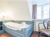 Das großzügige Hauptschlafzimmer ist mit einem Doppelbett (2x 80x200 cm) und maßgefertigten Tischlereinbauten eingerichtet. Ein zweites Schlafzimmer bietet ein gemütliches Einzelbett (90x190 cm), ebenfalls mit Tischlereinbauten, und ist damit ideal als erholsamer Rückzugsort. Das Badezimmer ist ein einladendes Wannenbad mit Tageslicht und bietet neben der Badewanne auch viel Platz für einen angenehmen Start in den Tag.