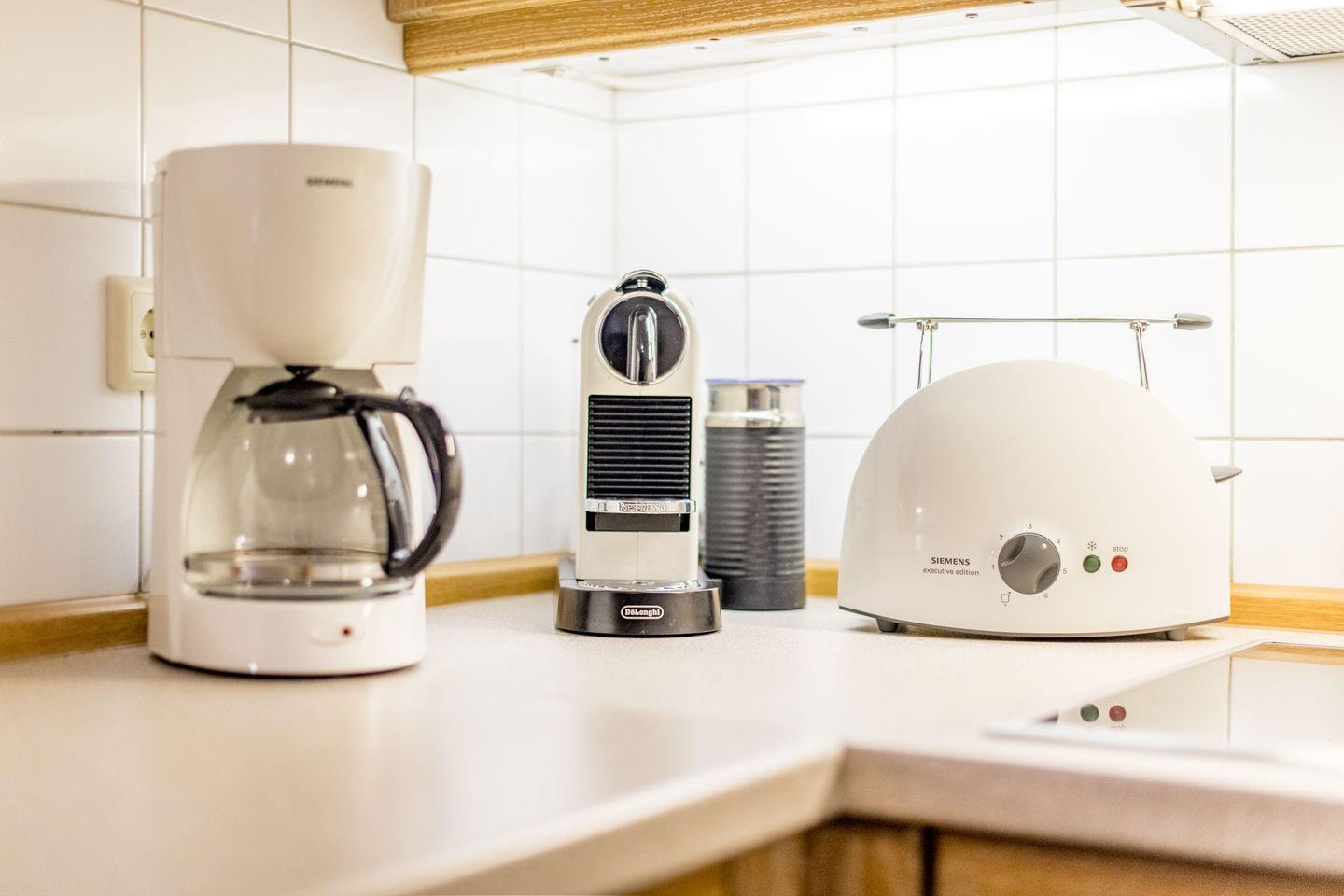 Die voll ausgestattete Küche mit Ceranfeld, Filterkaffeemaschine und Nespresso-Maschine sorgt für höchsten Komfort bei der Selbstverpflegung.