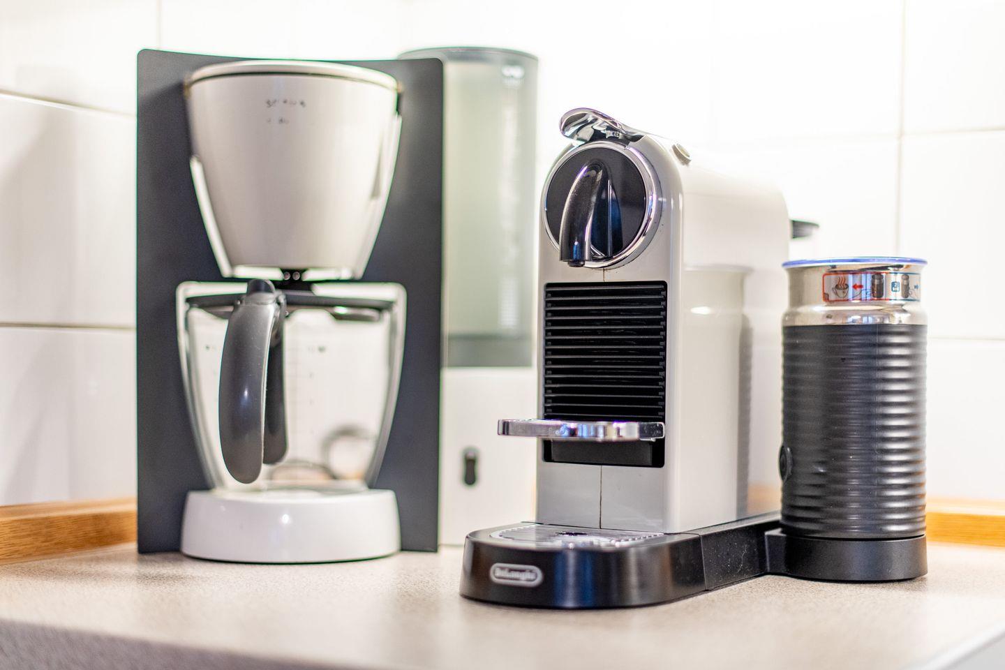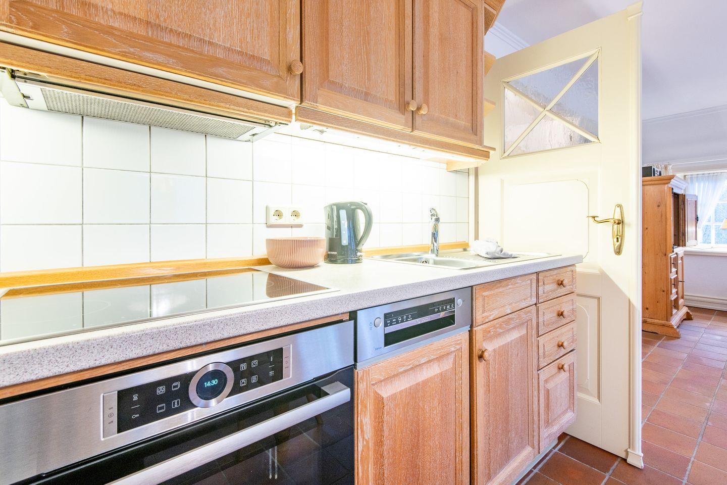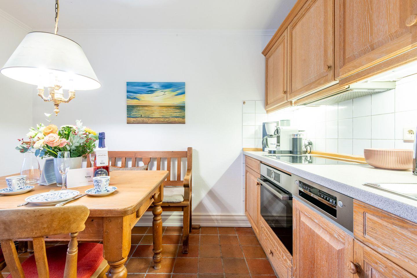 Die Küche ist offen gestaltet und bietet mit Ceranfeld, Filterkaffeemaschine und Nespresso-Maschine höchsten Komfort für Ihre kulinarischen Wünsche. Hier finden Sie alles, was Sie zur Zubereitung von Mahlzeiten benötigen, und genießen gleichzeitig die gesellige Atmosphäre.