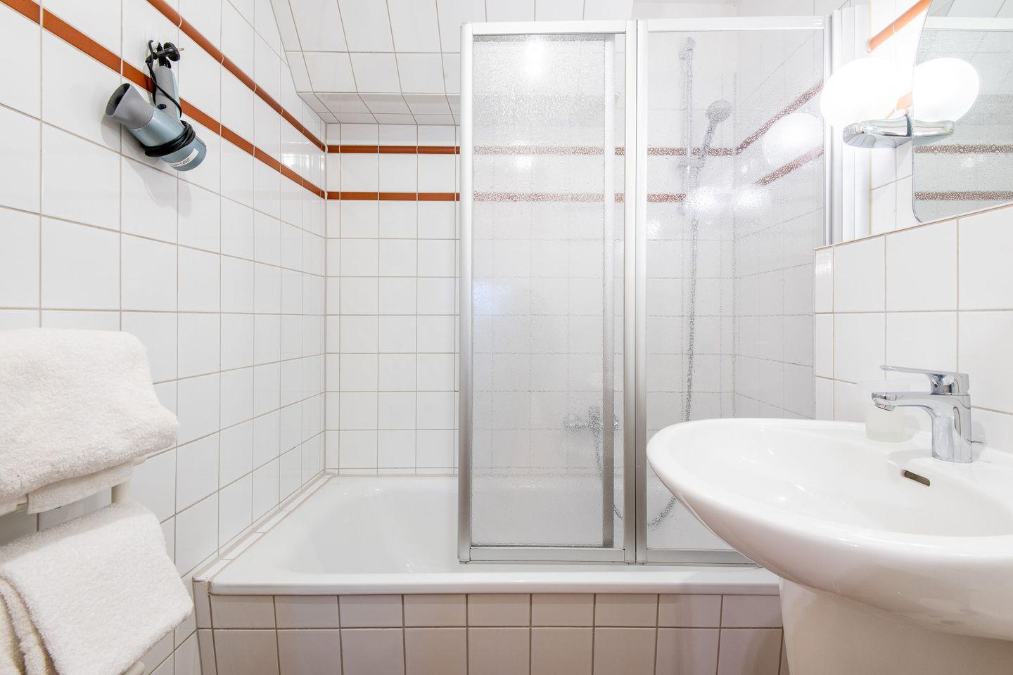Das Hauptschlafzimmer ist mit einem gemütlichen Doppelbett (2x 80x200 cm) und maßgefertigten Tischlereinbauten eingerichtet. Das zweite Schlafzimmer verfügt über ein Einzelbett (90x190 cm) und ebenfalls über maßgefertigte Einbauten, die für zusätzlichen Stauraum sorgen. Das moderne Badezimmer ist mit Badewanne, Dusche, WC, Waschtisch, Handtuchtrockner und Fön ausgestattet und bietet höchsten Komfort.