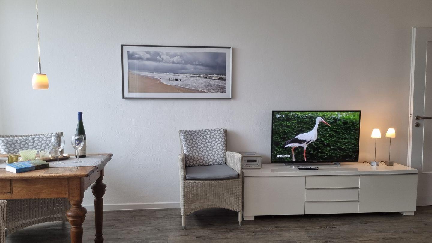 Ein weiteres Highlight des Appartements ist der Balkon, auf dem Sie entspannen und die frische Meeresbrise genießen können. Von hier aus haben Sie den herrlichen Blick auf das Wasser – der perfekte Ort, um den Sonnenuntergang über der Nordsee zu beobachten oder einfach in einen guten Roman einzutauchen.