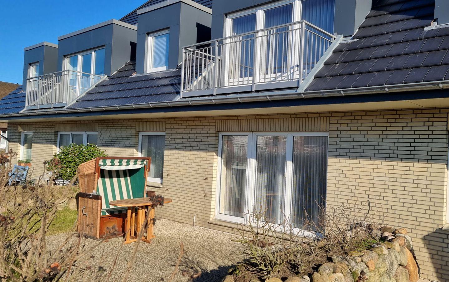 Ein weiteres Highlight des Lornsenhof App 5 ist die große Terrasse, auf der Sie es sich mit bequemen Gartenmöbeln gemütlich machen können. Genießen Sie Ihre morgendliche Tasse Kaffee unter freiem Himmel oder lassen Sie den Tag entspannt bei einem Glas Wein ausklingen. Strandkörbe sind vorhanden und laden dazu ein, die Sonne und frische Meeresbrise in vollen Zügen zu genießen.