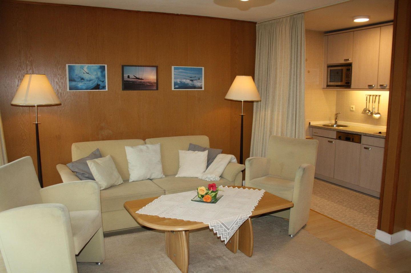 Das Appartement ist liebevoll und komfortabel eingerichtet. Im Schlafzimmer erwartet Sie ein gemütliches Bett für erholsame Nächte, während das Wohnzimmer mit einem bequemen Sofa ausgestattet ist, das zum Entspannen und Verweilen einlädt. Hier können Sie entspannte Abende mit einem guten Buch oder einem Film auf dem 25-34 Zoll großen TV verbringen. Für die musikalische Untermalung sorgt die HiFi-Anlage oder der CD-Spieler – so wird jeder Aufenthalt unvergesslich.