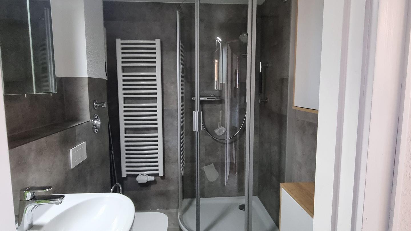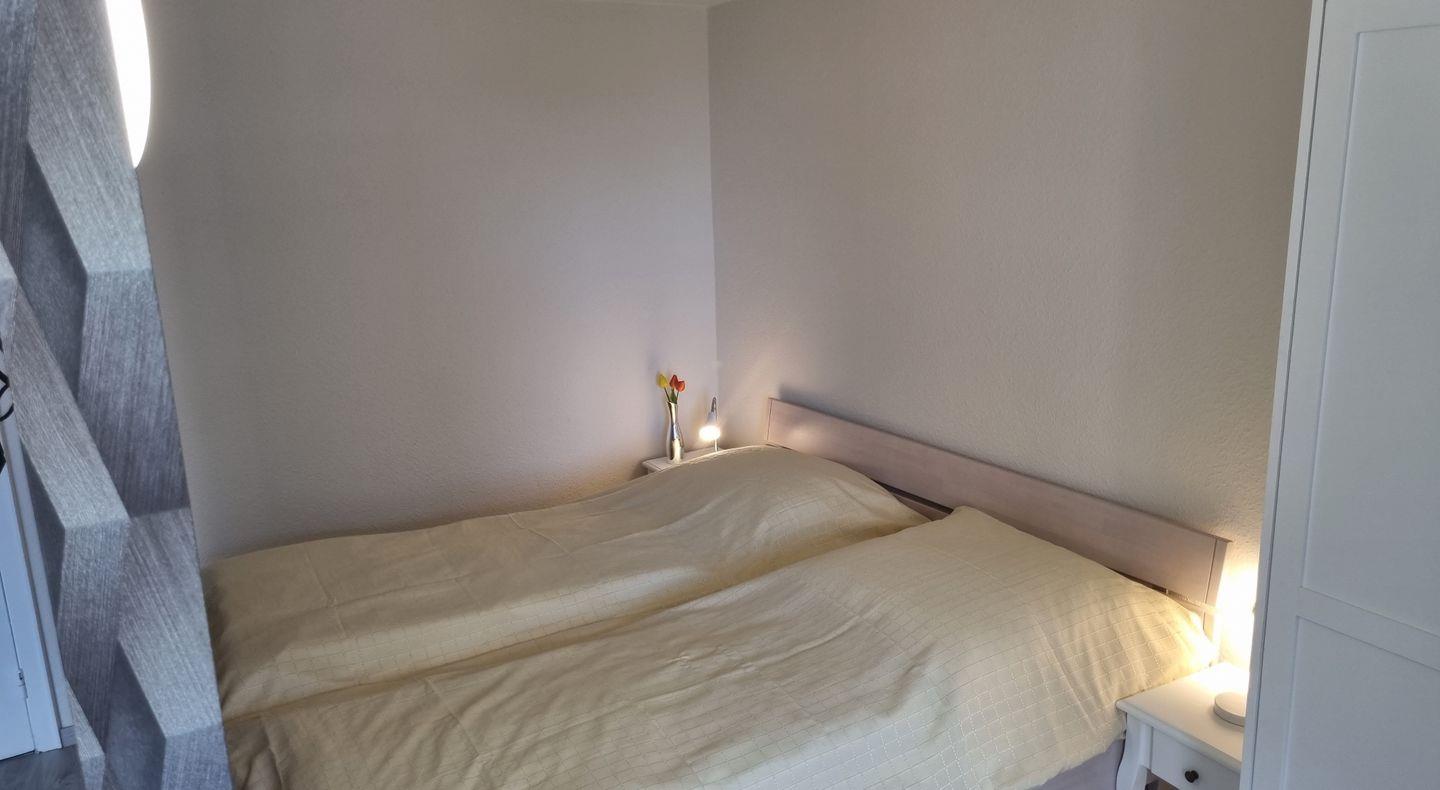 Die Ferienwohnung verfügt über ein helles und freundliches Schlafzimmer, das mit einem komfortablen Doppelbett ausgestattet ist. Hier können Sie nach einem erlebnisreichen Tag an der frischen Luft wunderbar abschalten und neue Energie tanken. Das moderne Badezimmer ist mit einer bodengleichen Dusche ausgestattet, die Ihnen ein angenehmes Duscherlebnis bietet und die Urlaubstage lebendig einleitet.