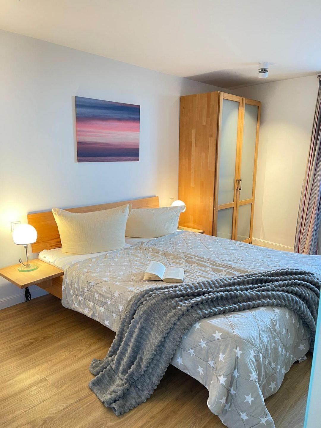 Die Unterkunft verfügt über ein helles und freundliches Schlafzimmer mit einem bequemen Bett, das Ihnen restful nights garantiert. Eine offene Küche, ausgestattet mit allen modernen Annehmlichkeiten wie einem Cerankochfeld, Backofen, Geschirrspüler, Kühlschrank und einer Kaffeemaschine, lässt keine Wünsche offen. Hier können Sie Ihre Lieblingsgerichte zubereiten und die Zeit mit einem romantischen Dinner zu zweit verbringen.