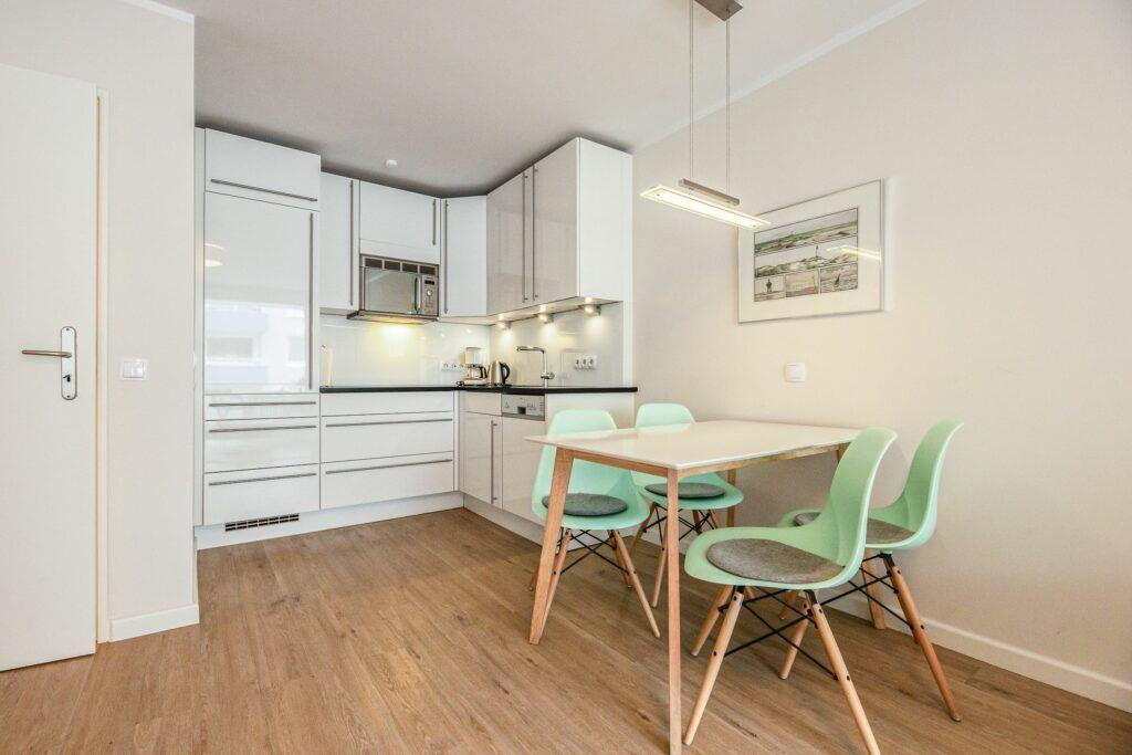 Die Ferienwohnung verfügt über ein einladendes Schlafzimmer, das Ruhe und Erholung garantiert. Für Ihre kulinarischen Kreationen steht eine voll ausgestattete, offene Küche zur Verfügung, die mit modernen Geräten wie einem Ceran-Herd, einer Mikrowelle, einem Kühlschrank und einer Spülmaschine ausgestattet ist. Genießen Sie Ihre Mahlzeiten am Esstisch oder auf dem Balkon, der mit einer schönen Aussicht zum Verweilen einlädt. Sie können bei einer Tasse Kaffee oder einem Glas Wein die frische Meeresbrise genießen und den Tag in aller Ruhe ausklingen lassen.