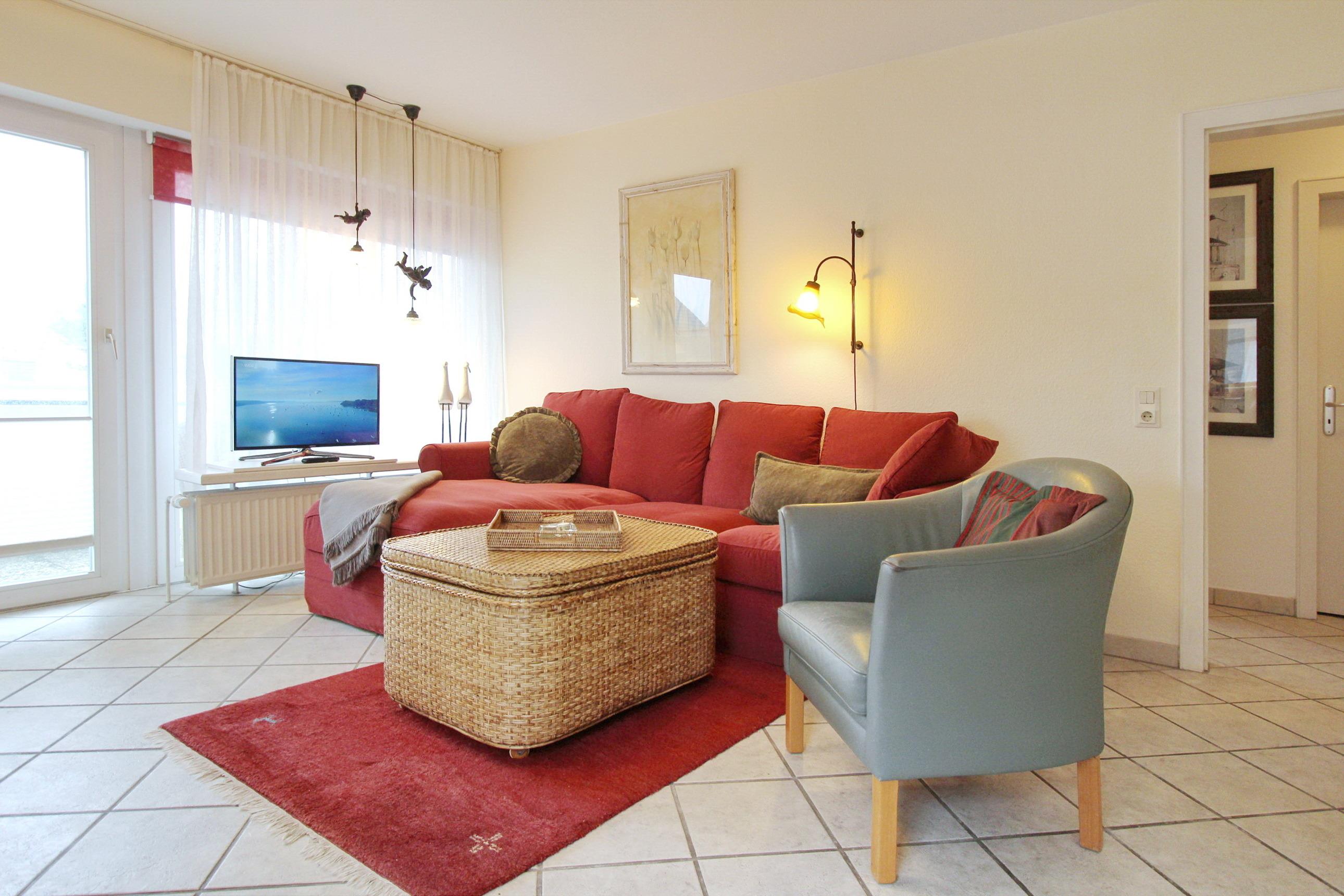 Sehr gemütliche 2-Zimmer-Wohnung im Herzen der Inselmetropole Westerland. Die Wohnung befindet sich in der 1. Etage mit Balkon zur Südseite - auf dem Balkon gibt es einen Strandkorb und Sitzmöbel mit Auflagen. Der Wohnraum ist ausgestattet mit einer großen Couchgarnitur mit Sessel, einem Essplatz mit zwei Rattanstühlen, Flachbild-TV und Radio mit CD. In der, im Wohnzimmer integrierten Küchenzeile, finden Sie einen Geschirrspüler, eine Mikrowelle und ein Cerankochfeld mit 2 Platten vor. Im Schlafzimmer befindet sich ein Doppelbett und Einbauschränke. Das Badezimmer ist mit einer bodentiefen Dusche, einem Hänge-WC und einem Waschtisch ausgestattet. Diese Nichtraucherwohnung hat eine Größe von 458 m². Haustiere sind nicht gestattet. Der Eigentümer verfügt über einen eigenen Internetanschluss (die Zugangsdaten befinden sich in der Wohnung), den Sie kostenfrei nutzen können. Arbeiten - Streamen - Surfen - alles kein Problem.