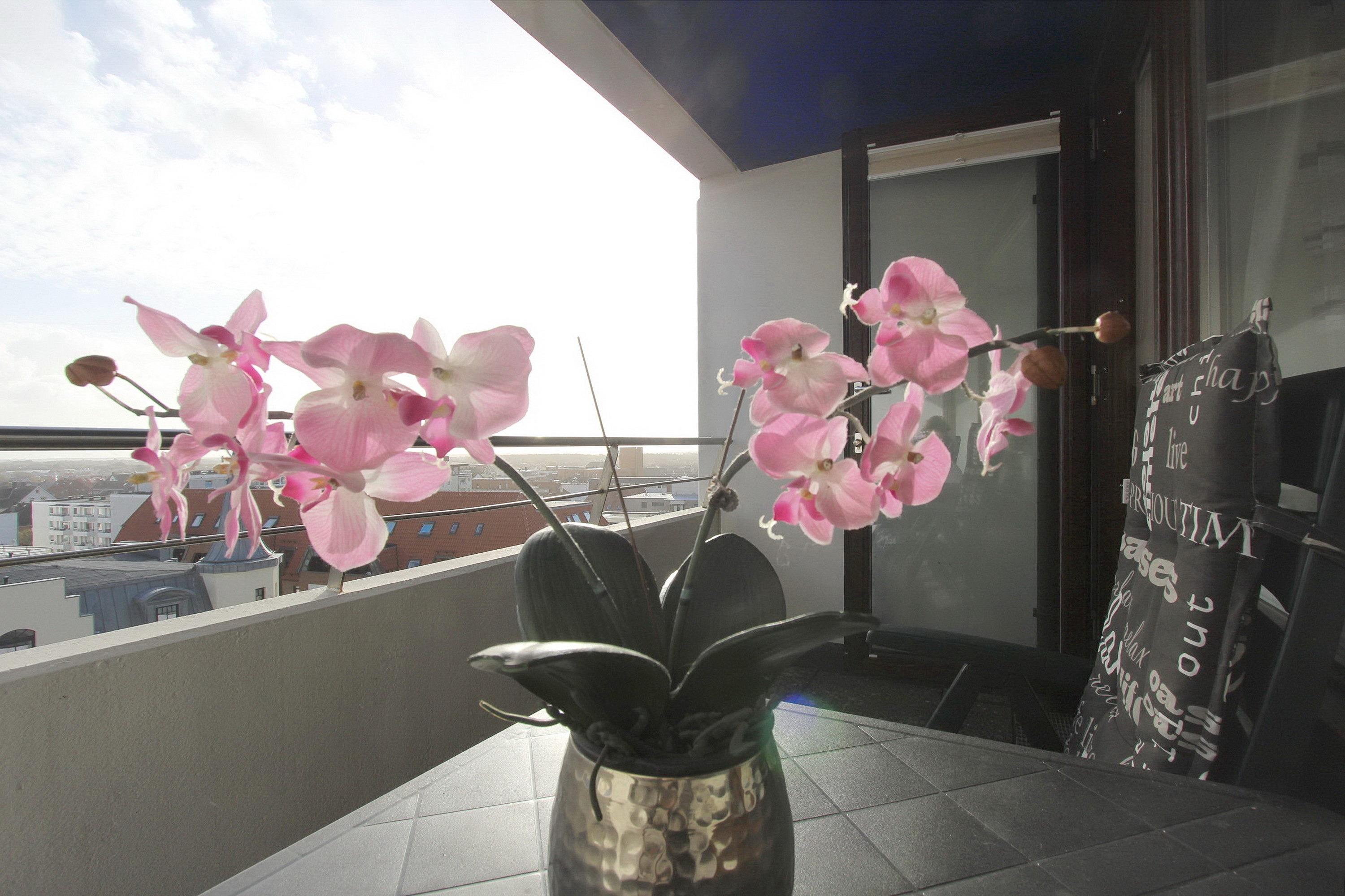 Diese mit viel Liebe zum Detail eingerichtete Einzimmerwohnung in der 5. Etage im Haus am Meer, liegt nur wenige Schritte vom Strand und Meer entfernt. Der hell und freundlich dekorierte Wohn-/Schlafraum verfügt über einen Ostbalkon mit Balkonmöbel mit Sitzauflagen laden zum Verweilen ein. Wenn die Sonne scheint, können sie hier, vollkommen geschützt, das Frühstück genießen und das Treiben auf der Friedrichstraße beobachten. Diese Nichtraucherwohnung ist mit Einzelschrankbetten, einem Essplatz am Fenster mit 2 Stühlen, sowie einer gemütlichen Sitzgruppe mit Couch und Sessel ausgestattet. In der ganzen Wohnung wurde hochwertiger Holzfussboden verlegt. Das moderne Badezimmer hat eine Dusche mit flachem Einstieg, einen Fön, Kosmetikspiegel und einen Handtuchtrockner. In der Küchenzeile im Flur mit Backofen, Ceranfeld und Geschirrspüler ist alles vorhanden um sich selbst zu verpflegen. Zur technischen Ausstattung dieser Wohnung gehört ein Smart- TV von Panasonic sowie ein kostenfreier WLAN-Anschluss (WEG Haus am Meer - Passwortfrei - ohne Gewähr). Diese Nichtraucherwohnung hat eine Größe von: ca. 30 m². Hunde sind ausdrücklich willkommen.