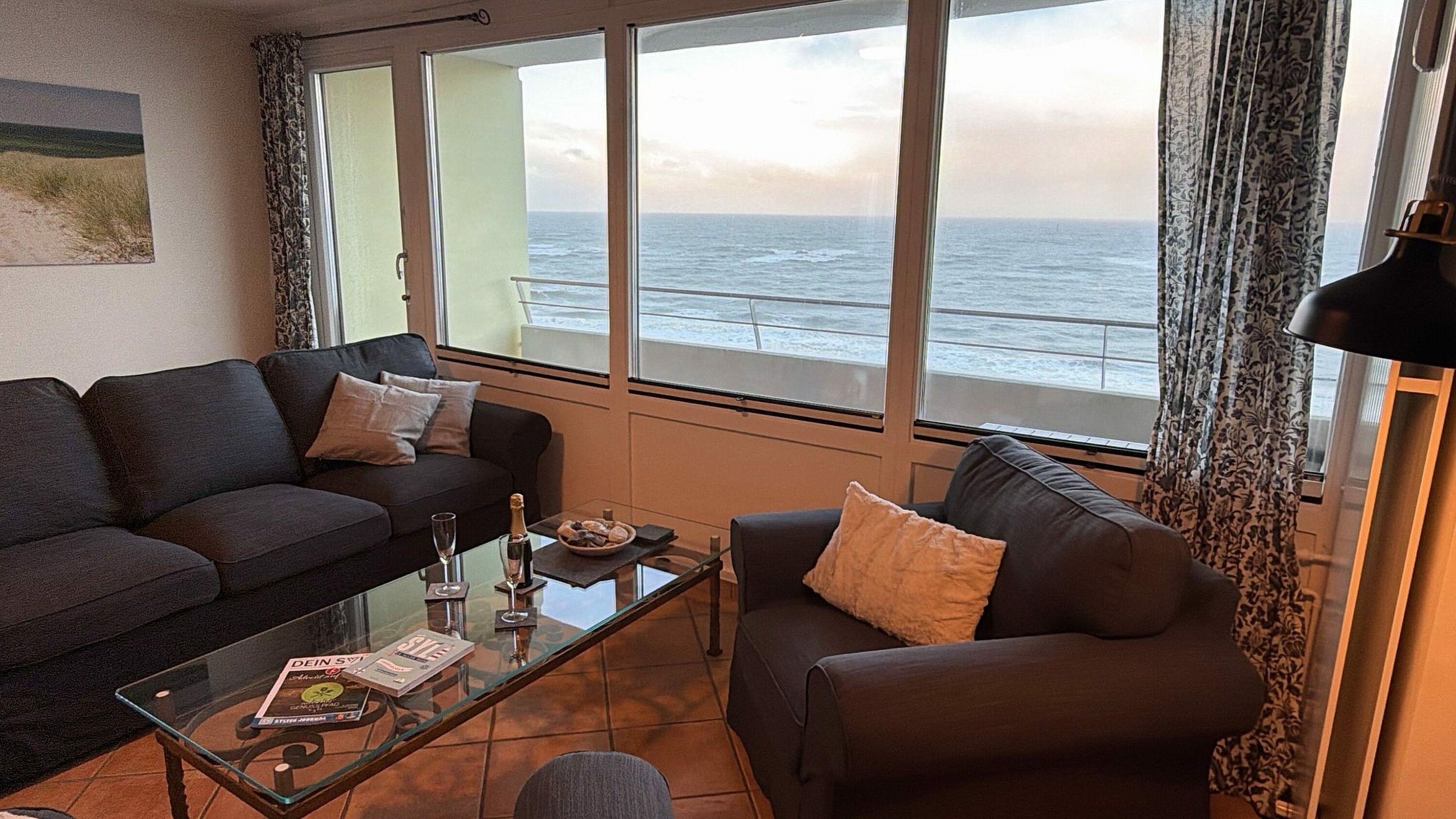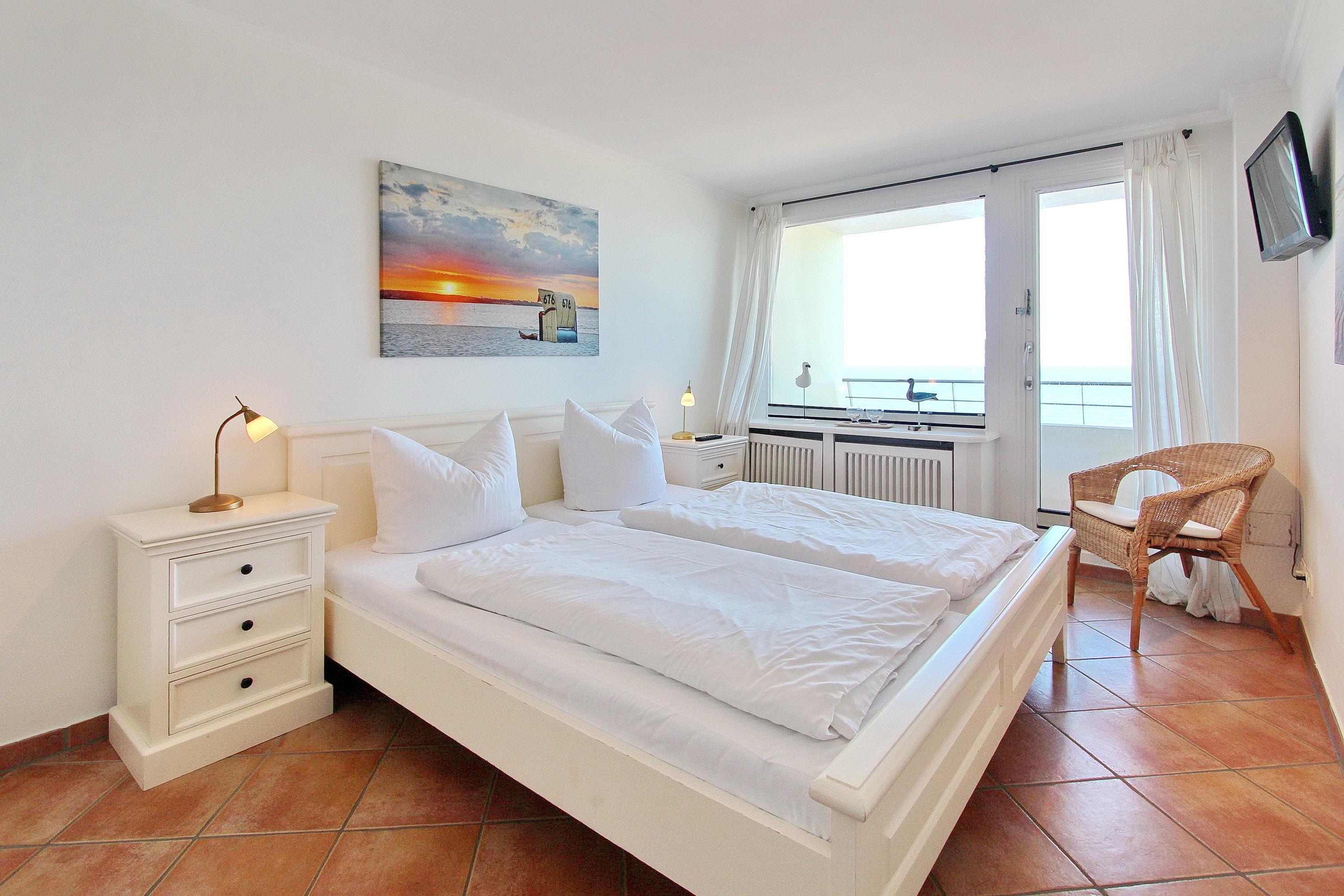 Wunderschöne 3 Zimmer Nichtraucher-Wohnung in der 6. Etage im Haus Metropol mit vollem Meeres-und Inselblick. Insgesamt hat die Wohnung 3 Balkone. Der lichtdurchflutete Wohnraum (mit einem West- und einem Nordbalkon) verfügt über eine große Couchgarnitur, einen großen Flachbildfernseher, einen runden Essplatz mit 4 Stühlen und eine offene Küchenzeile mit Geschirrspüler, Backofen, zusätzliche Senseo Pad Maschine und Mikrowelle. Das Schlafzimmer mit Doppelbett verfügt über einen Westbalkon, hat auch einen Fernseher und einen direkten Zugang zum Badezimmer. Das zweite Schlafzimmer mit Doppelbett hat einen tollen Blick über das Wasser Richtung Norden der Insel. Optionale spezielle Kopfkissen, Bettdecken und der Fliesenboden machen diese Wohnung allergikerfreundlich. Das Wohlfühlbad hat einen Waschtisch, einen mobilen Haltegriff, Duschhocker und eine ebenerdige Dusche, die auch für Gäste mit Handicap geeignet ist. Der Flur ist mit ausreichend Garderobenschränken ausgestattet. Die ganze Wohnung ist mit viel Liebe zum Detail eingerichtet und ist mit Sicherheit ein Platz an dem man einen erholsamen Urlaub verbringen kann.Ein freies WLAN Netzwerk (WEG Haus Metropol - Passwortfrei - ohne Gewähr) steht ihnen kostenfrei zur Verfügung. Wohnungsgröße : ca. 90 m².