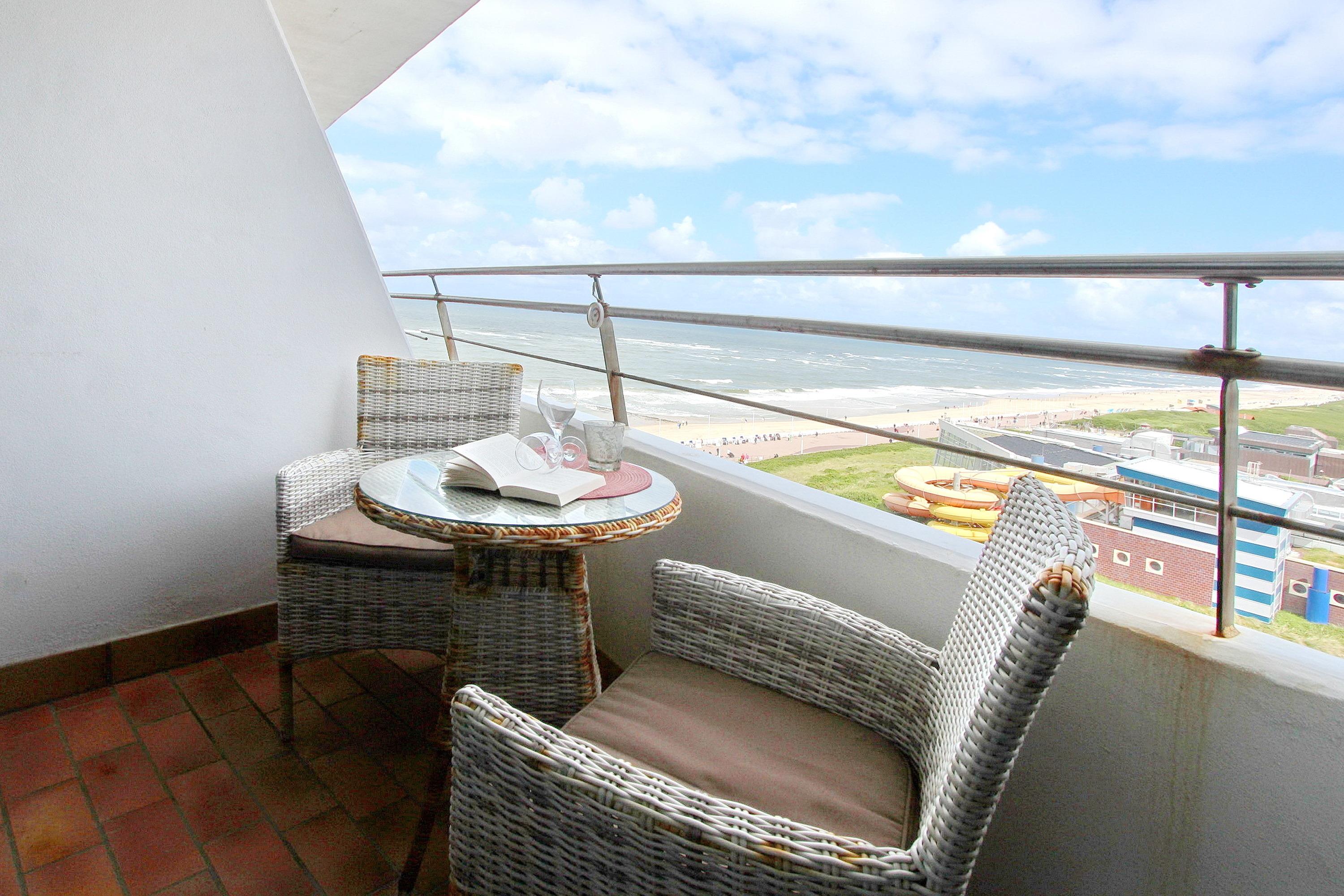 Hell und freundlich eingerichtete 2 Zimmer Wohnung in der 6. Etage im Haus Metropol mit Balkon zur Ost-und Nordseite mit Balkonmöbeln. Der Wohnraum verfügt über eine bequeme Couch, 2 Fernsehsessel, ein Einzelschrankbett und einen Essplatz mit Eckbank und 2 Stühlen. Vom Essbereich haben sie einen Zugang zum Nordbalkon mit seitlichem Blick auf die Nordsee. Der Wohn-Essbereich ist gefliest. Die separate Küche mit Cerankochfeld, zusätzlicher Tassimomaschine und Backofen mit Mikrowelle hat eine große Durchreiche zum Essplatz. Im Schlafzimmer mit Teppichboden steht ein Doppelbett und ein Kleiderschrank mit reichlich Stauraum. Dieses Zimmer hat ebenfalls einen eigenen Balkon zur Ostseite und einen Zugang zum Badezimmer. Das neu renovierte Badezimmer besticht durch seine Größe und die ebenerdige Dusche mit Sitzbank, die somit besonders für Gäste mit Handicap geeignet ist. Zur technischen Ausstattung gehört: ein Flachbildfernseher sowie ein freies WLAN Netzwerk (WEG Haus Metropol - Passwortfrei - ohne Gewähr) steht ihnen kostenfrei zur Verfügung. Diese Nichtraucherwohnung hat eine Größe von ca. 70 m².