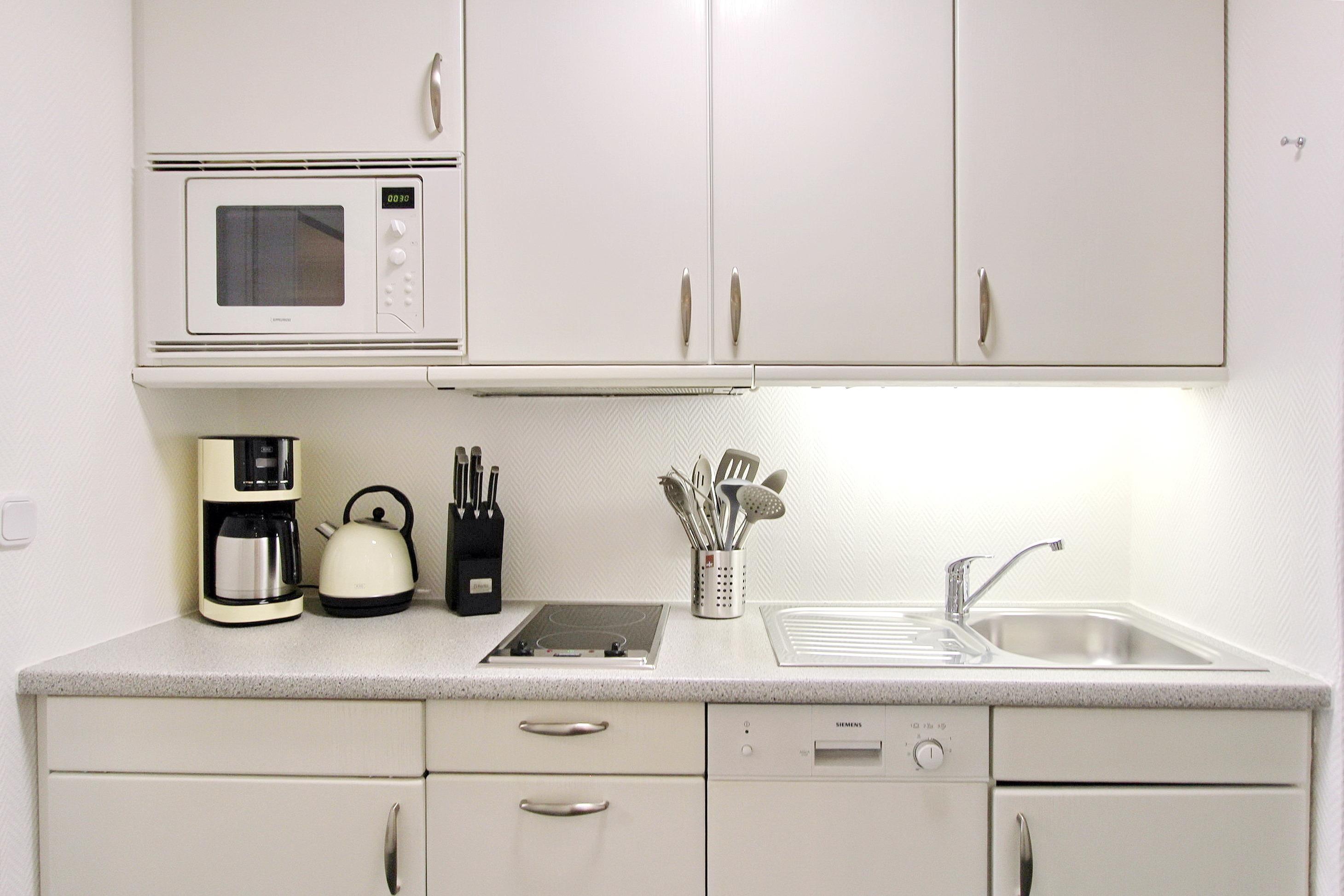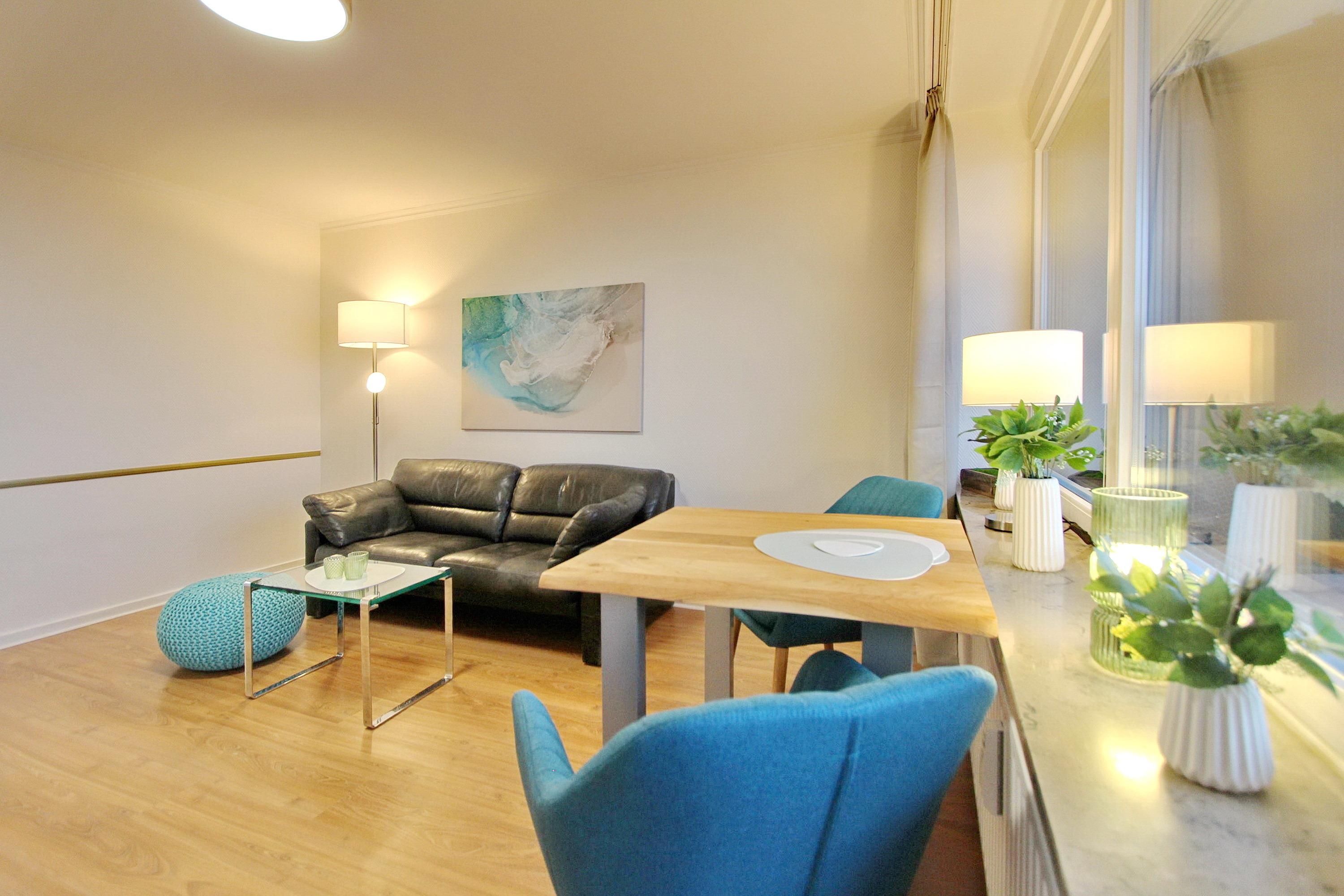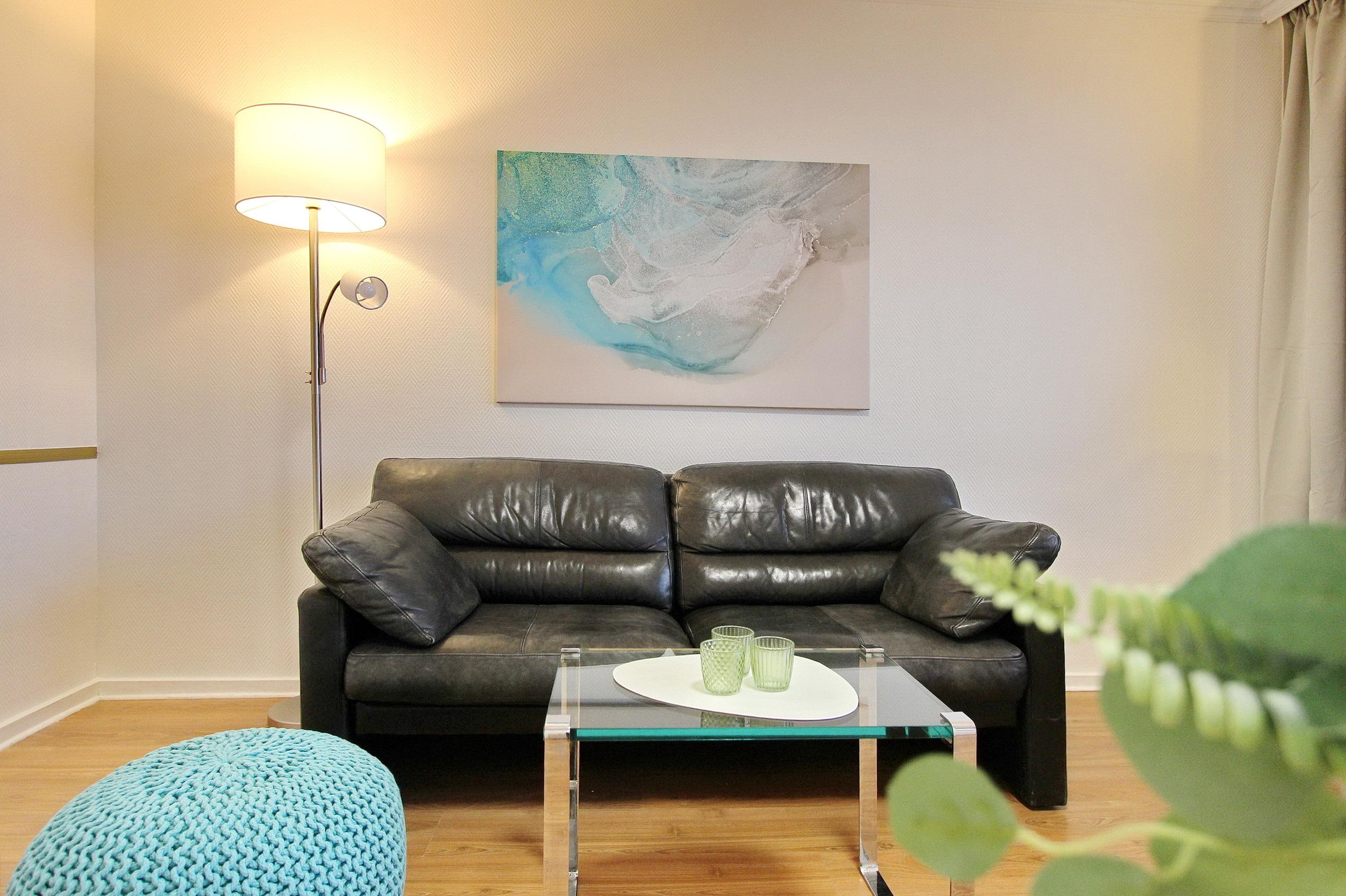 Hell und klassisch modern eingerichtete Einzimmerwohnung in der 7. Etage im Hause Metropol mit herrlichem Weitblick über die Dächer von Westerland. Vom Balkon aus können Sie das Frühstück bei aufgehender Sonne windgeschützt genießen mit Blick bis zum Wattenmeer. Der Wohn-Schlafraum ist mit zwei Schrankbetten, einer Ledercouch (WK), einem Draenert Glastisch, einem Relaxsessel und einem großzügigen hellen Tisch (USM) nebst zwei azurblauen Hansenstühlen ausgestattet. So kann die Wohnung auch für eine Büroauszeit mit Arbeitsmöglichkeit genutzt werden. Helles Laminat und Grafiken des Sylter Künstlers Sprotte runden die besondere Atmosphäre ab. Das neue moderne Badezimmer verfügt über eine große Dusche mit flachem Einstieg, einen Fön und Handtuchtrockner. Ausreichend Ablage- und Stauraum für Ihre persönlichen Dinge ist vorhanden. Um sich selbst zu verpflegen gibt es im Flur eine kleine Küchenzeile mit Cerankochfeld (2 Herdplatten), eine Mikrowelle, zusätzliche Nespressomaschine und Geschirrspüler. Zur technischen Ausstattung dieser Wohnung gehört: ein Flachbildfernseher von Sony und eine Stereoanlage mit CD Spieler. Ein freies WLAN Netzwerk (WEG Haus Metropol - Passwortfrei - ohne Gewähr) steht ihnen kostenfrei zur Verfügung. Haustiere sind ausdrücklich Willkommen. Wohnungsgröße: ca. 30 m².