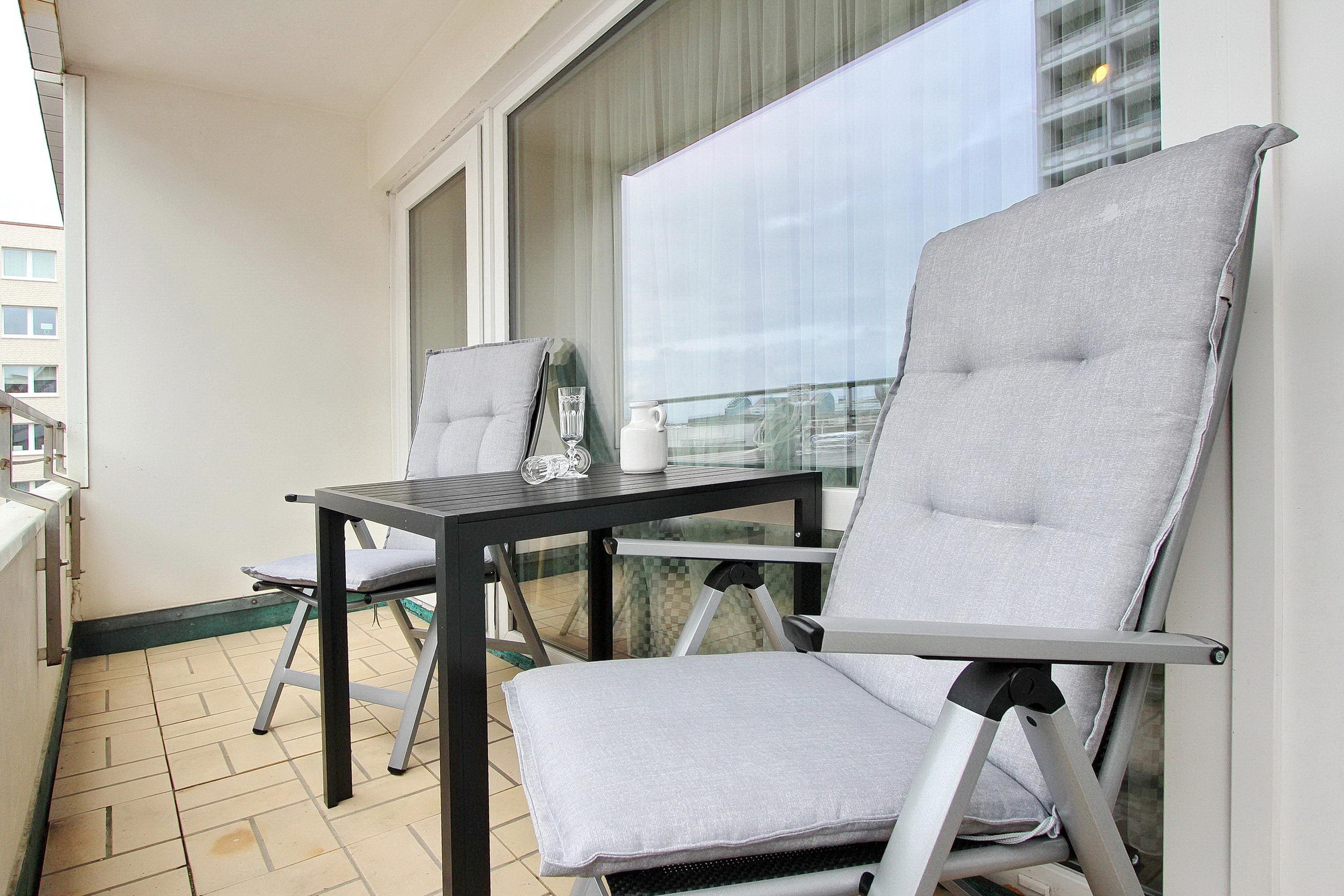 Das 1-Zimmer-Appartement befindet sich in der 3. Etage des Hauses Westerhörn und ist nur wenige Schritte vom Strand und Meer entfernt. Der Wohn- und Schlafraum ist hell und verfügt über bodentiefe Fenster sowie einen vorgelagerten Westbalkon mit vorhandenen Balkonmöbeln. Die Einrichtung umfasst Einzelschrankbetten, eine Sitzgruppe und zwei Stühle. Eine offene Küchenbar mit Backofen und Esstresen, an dem Lederbarhocker stehen, ermöglicht das Einnehmen von Mahlzeiten. Der Fußboden wurde in Holzdielenoptik gestaltet, was eine hygienische Reinigung gewährleistet. Im Badezimmer befinden sich eine Badewanne mit Duschvorhang sowie ein Fenster zur direkten Belüftung. Zur technischen Ausstattung gehören ein moderner Flachbildfernseher von Panasonic und ein Radio. Die Größe des Appartements beträgt ca. 35 m².