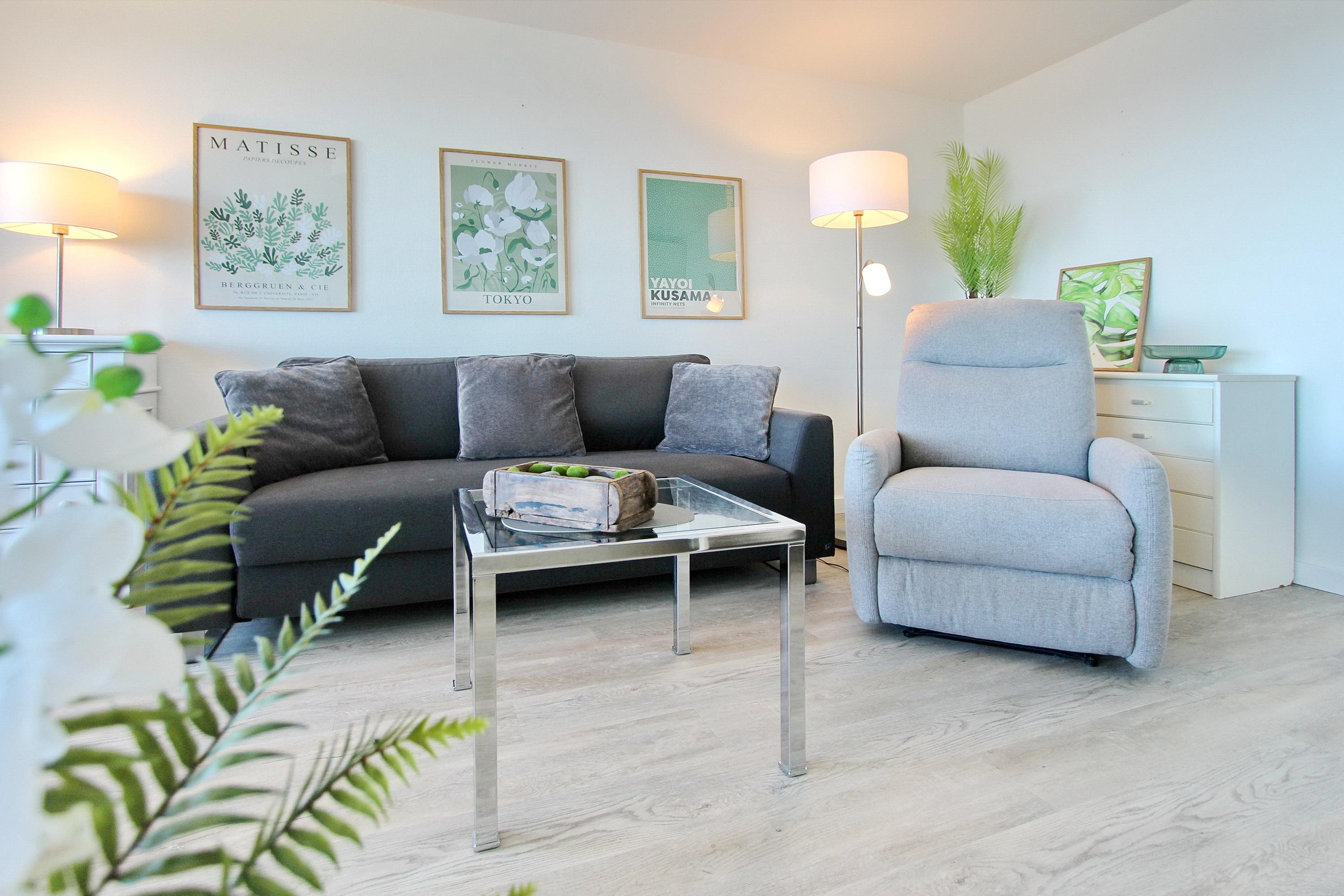 Das geräumige Appartement für bis zu 2 Personen in der 10. Etage im Haus Metropol hat eine Wohnungsgröße von ca. 42 m². Das wirklich Schöne an dieser Wohnung ist der herrliche Panoramablick über die Nordsee und den weißen Strand von Westerland. Der kombinierte Wohn-/Schlafraum hat einen Westbalkon mit Balkonmöbeln und Auflagen und verfügt über Einzelschrankbetten, einen Essplatz mit 2 Stühlen am Fenster, ein neues 3-Sitzer Sofa und einen elektrisch verstellbaren Relaxsessel für die Entspannung. Das Badezimmer mit Dusche hat einen beheizten Handtuchtrockner, der Flur eine zusätzliche Garderobennische. In der separaten Küche mit Backofen können Sie sich selbst verpflegen. Zur technischen Ausstattung gehört: ein 32 Zoll Flachbildfernseher und ein Radio. Ein freies WLAN Netzwerk (WEG Haus Metropol - Passwortfrei - ohne Gewähr) steht ihnen kostenfrei zur Verfügung.