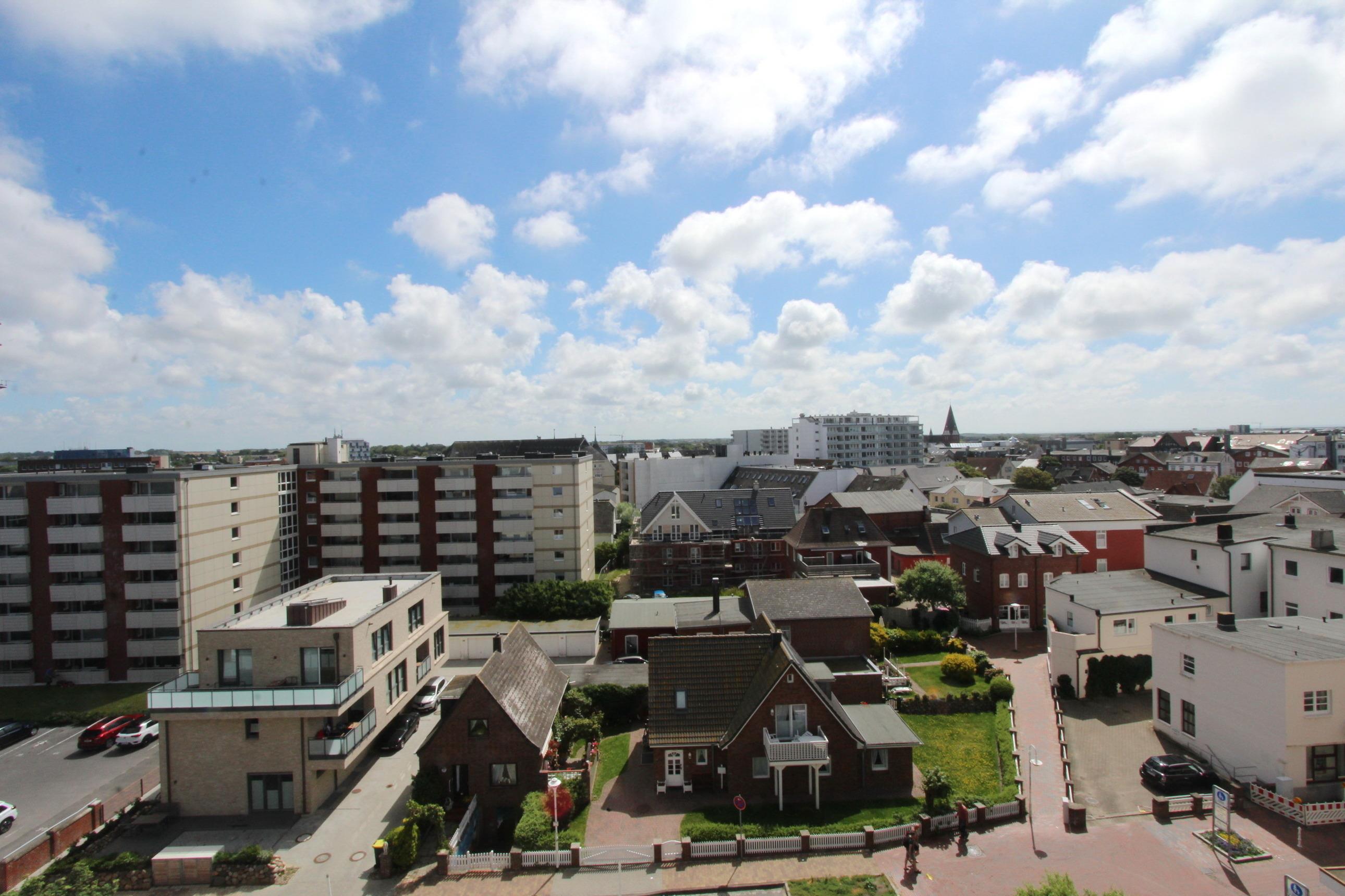 Gemütliche Einzimmerwohnung mitten im Zentrum von Westerland. Nur wenige Gehminuten zu den Fussgängerzonen und zum Strand. Sie befindet sich in der 6. Etage mit Balkon und herrlichem Weitblick über die Insel. Das kombinierte, geflieste Wohn-/Schlafzimmer ist mit einem Doppelschrankbett, einem kleinen Zweisitzersofa und einem Essplatz mit 2 Stühlen am Fenster ausgestattet. Im Flurbereich finden Sie die Küchenzeile mit Ceranfeld und Microwelle vor. Das Badezimmer verfügt über eine Dusche mit WC. Zur technischen Ausstattung dieser Nichtraucherwohnung gehört ein Flachbildfernseher der Marke Sony und eine Stereoanlage mit CD-Player. Haustiere sind nicht gestattet. Wohnungsgröße ca. 28 m².