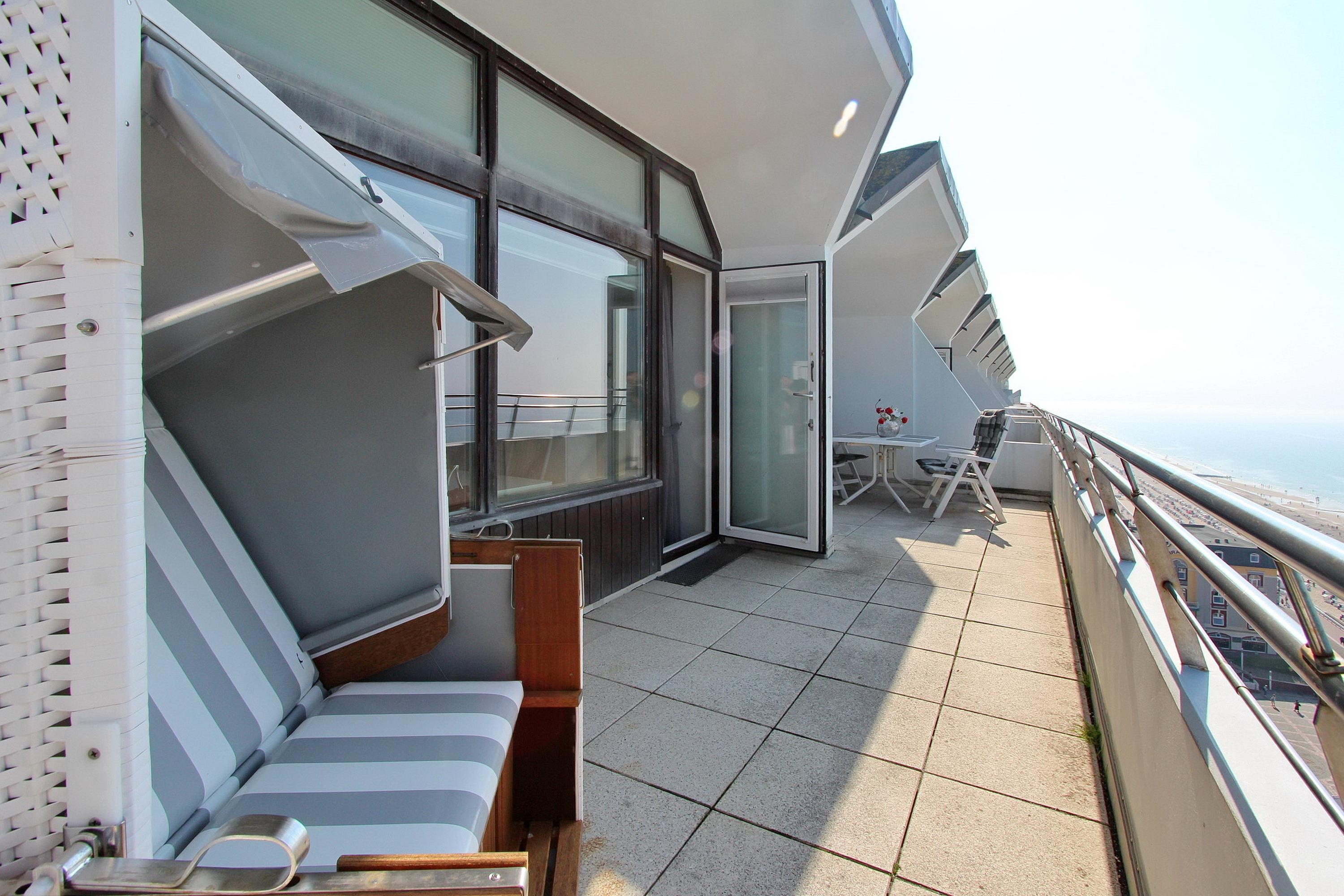 Wunderschöne Penthousewohnung in der 14. Etage im Haus Metropol mit einem unvergleichlichen Weitblick auf die Nordsee. Das Wohnzimmer, mit vorgelagerter Westdachterrasse, wurde im Frühjahr 2020 neu eingerichtet und verfügt über eine bequeme Sitzgruppe mit Schlaffunktion (Komfortmatratze), einem Fernsehsessel und einen großen Esstisch am Fenster mit 4 Stühlen. Gemütliche Candle Light Dinner zu zweit können hier, genauso wie Spieleabende mit der ganzen Familie, stattfinden. Das Schlafzimmer verfügt über ein feststehendes Doppelbett, einen Schreibtisch zum Erledigen der Urlaubspost, einen großen Kleiderschrank und einen zusätzlichen Flachbildfernseher (32 Zoll). Ein Babyreisebett hat hier auch Platz und wird Ihnen von der Eigentümerin kostenfrei zur Verfügung gestellt. Auf der großzügigen Westdachterrasse gibt es Balkonmöbeln von Kettler mit Auflagen und einen Strandkorb. Um sich selbst zu verpflegen gibt es im Wohnbereich eine offene Küche mit Mikrowellen-Backkombination, eine Bosch Küchenmaschine, einen Geschirrspüler und ein Ceranfeld mit 4 Herdplatten. Küchengeräte von WMF, eine zusätzliche Nespressomaschine und hochwertiges Geschirr und Gläser sind vorhanden. Das Badezimmer hat 2 Waschbecken und eine Dusche. Handtuchtrockner, Fön und ein Kosmetikspiegel gehören zur Ausstattung. An technischen Geräten sind: ein 40 Zoll Flachbildfernseher von Panasonic, ein Blu Ray Player und eine Bluetoothanlage von Sony mit CD Player vorhanden. Der Eigentümer verfügt über einen eigenen Internetanschluss (Zugangsdaten in der Wohnung) der kostenfrei zu nutzen ist. Diese Nichtraucherwohnung in der Penthouseetage ist über eine Treppe erreichbar, der Aufzug geht nur bis zur 13. Etage. Wohnungsgröße: ca. 70 m².