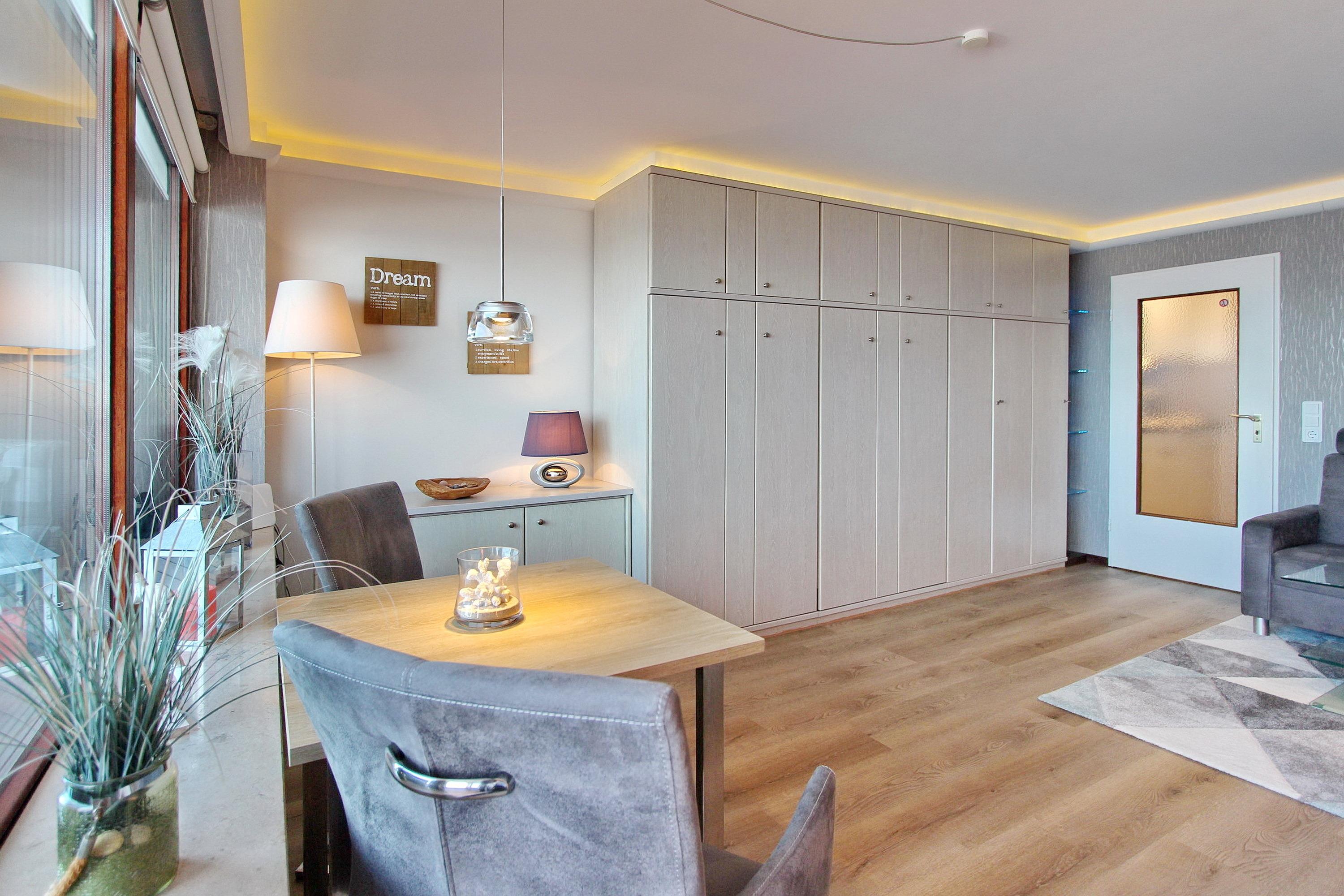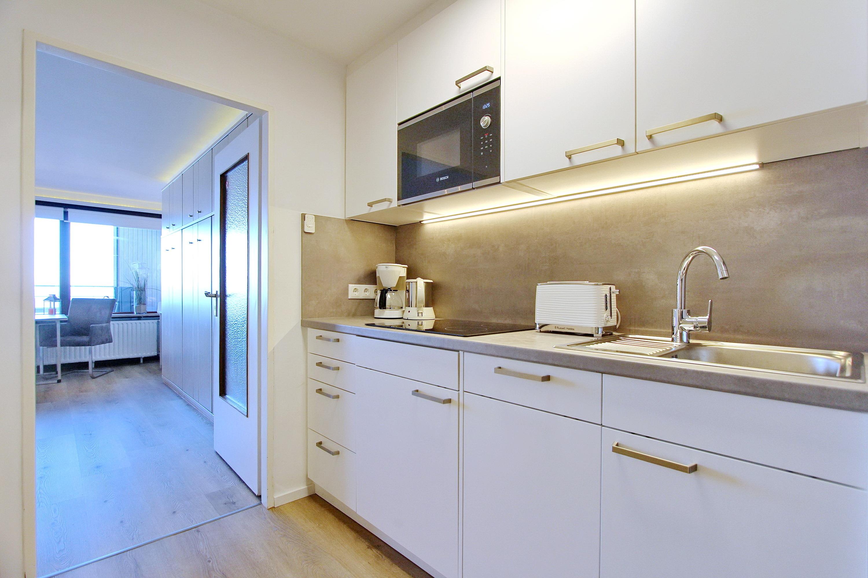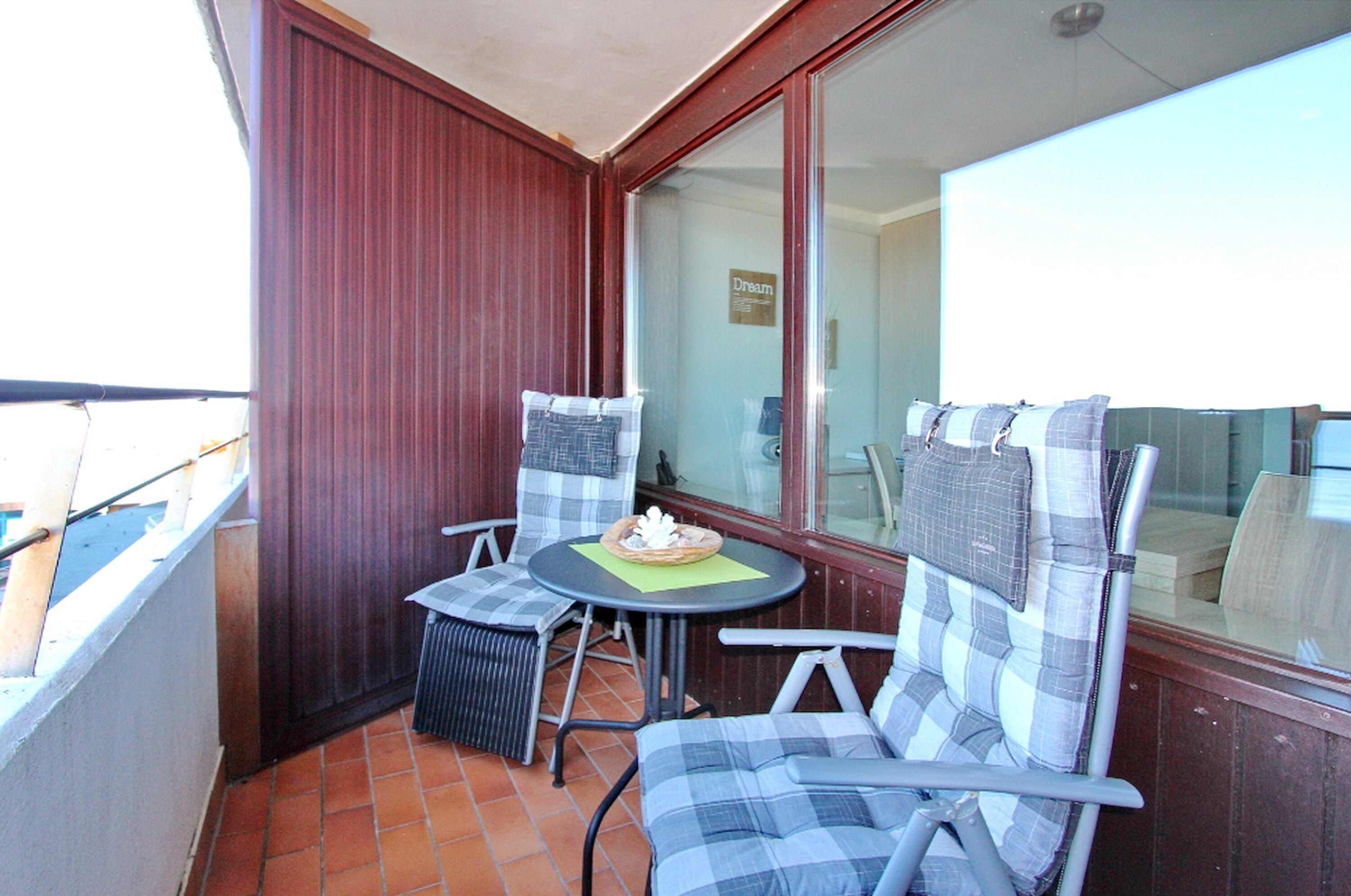 Diese Nichtraucherwohnung in der 3. Etage im Haus Metropol hat einen herrlichen Blick über den Strand und die Nordsee. Der hell und freundlich eingerichtete Wohn-/Schlafraum mit vorgelagertem Westbalkon verfügt über Einzelschrankbetten, einen Essplatz am Fenster mit 2 Stühlen, sowie eine bequemes Sofa. Im modernen Badezimmer gibt es eine Eckdusche, einen Handtuchtrockner, einen Duschhocker und einen Fön. Eine Einbauküche befindet sich im Flur. Stilvoll decken sie den Tisch mit Porzellan von Seltmann Weiden. Zur technischen Ausstattung gehört ein Flachbildfernseher von Panasonic mit integriertem Radio, eine Bluetooth Anlage mit Radio und CD Player von Sony und ein Telefonanschluss mit Flatrate ins dt. Festnetz ist ebenfalls vorhanden. Ein freies WLAN Netzwerk (WEG Haus Metropol - Passwortfrei - ohne Gewähr) und ein eigener Internetzugang des Eigentümers steht ihnen kostenfrei zur Verfügung. Haustiere sind herzlich willkommen. Wohnungsgröße: ca.34 m².